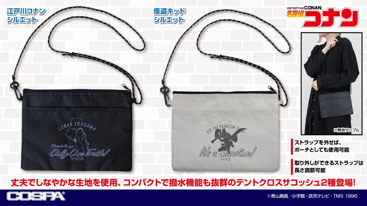 『名探偵コナン』より、「江戸川コナン」と「怪盗キッド」それぞれのシルエットをデザインした「テントクロスサコッシュ」がCOSPA(コスパ)から登場。