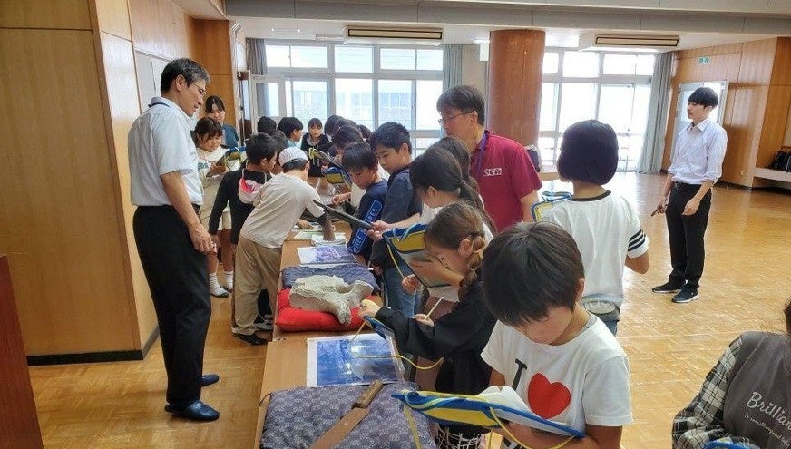 小川小中学校と呼子小学校の交流事業の一環として最適な題材と捉えて実施していただきました。