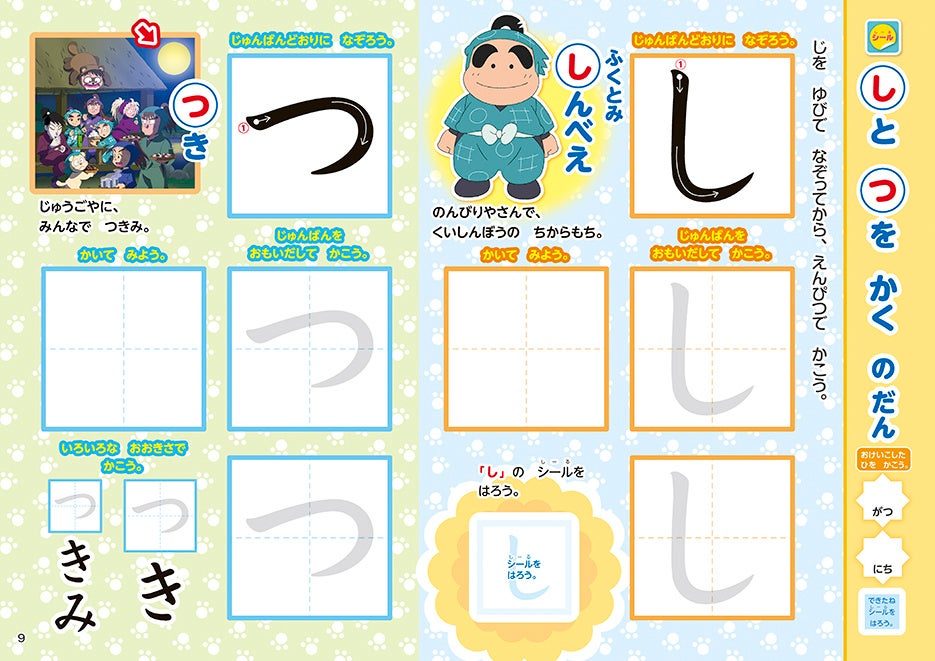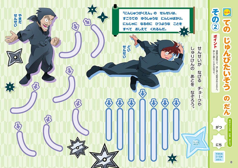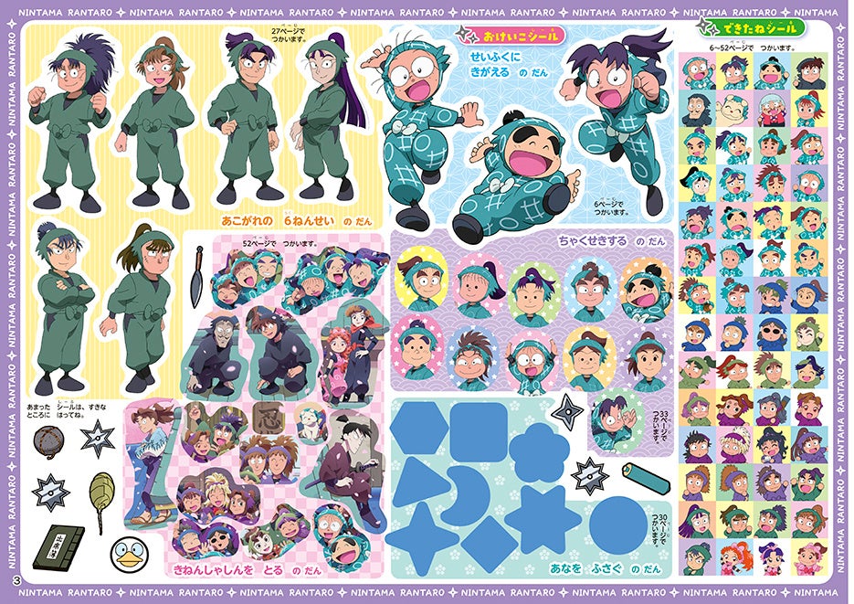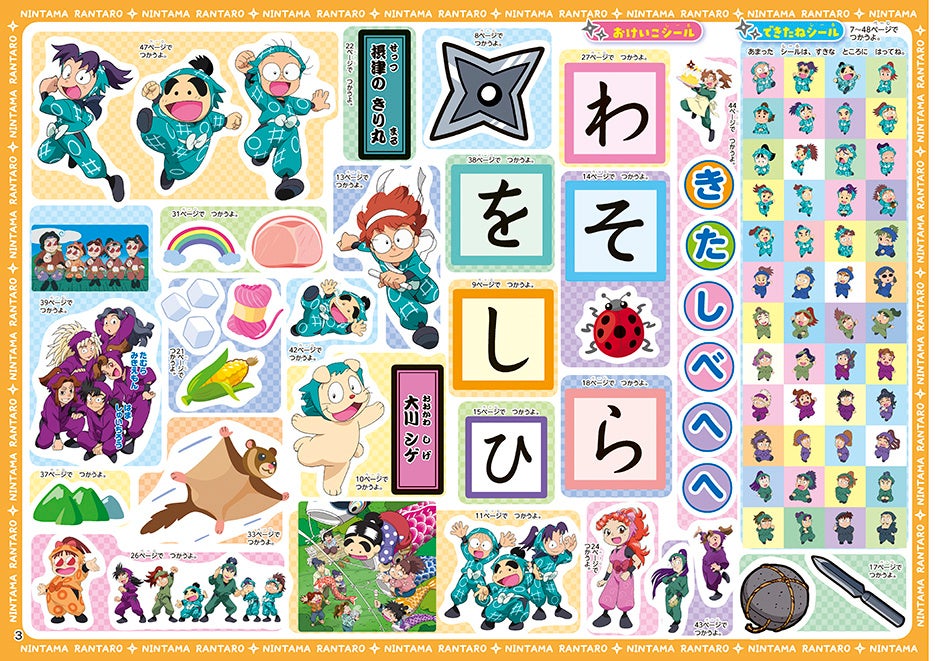 全ページ「忍たま乱太郎」のイラスト入りで、「おけいこシール」「できたねシール」もいっぱい!