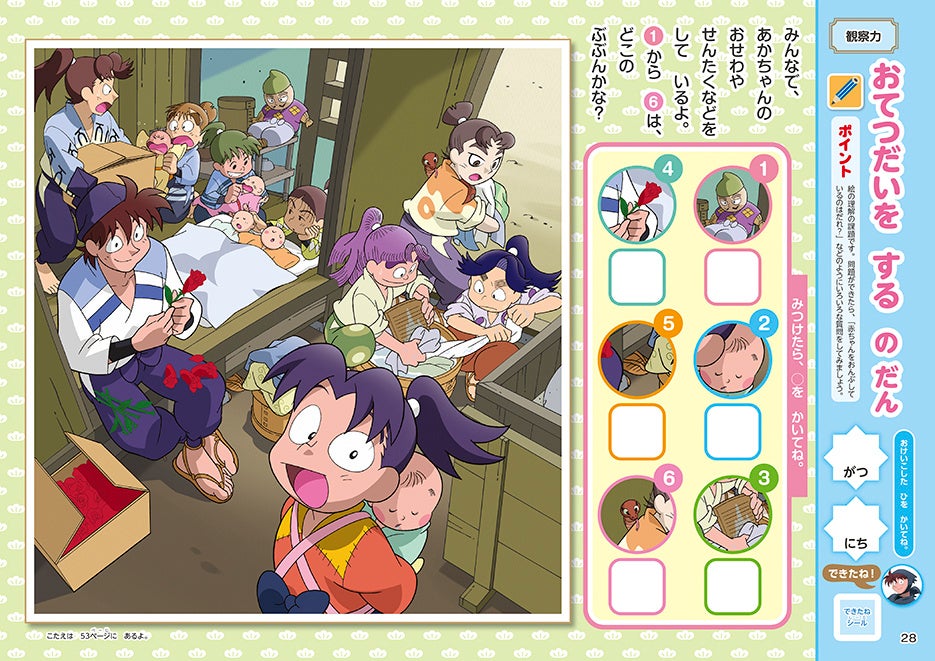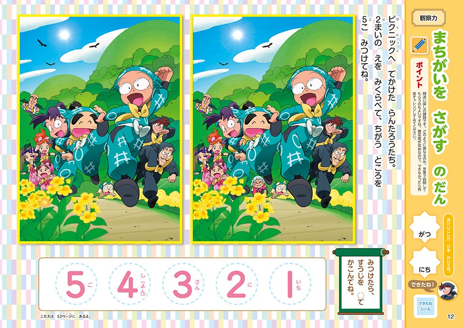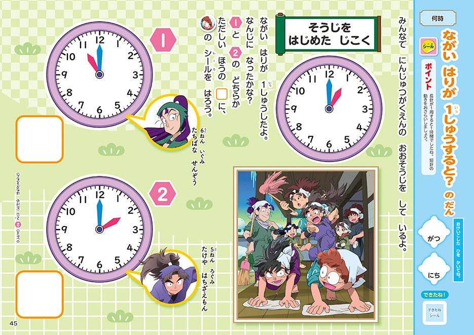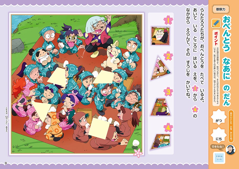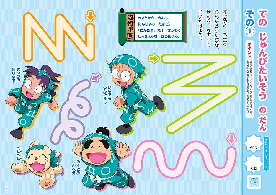 「ひらがな」「とけい」「ちえ」特訓の段、全ての修了を目指して忍たまたちと頑張ろう!