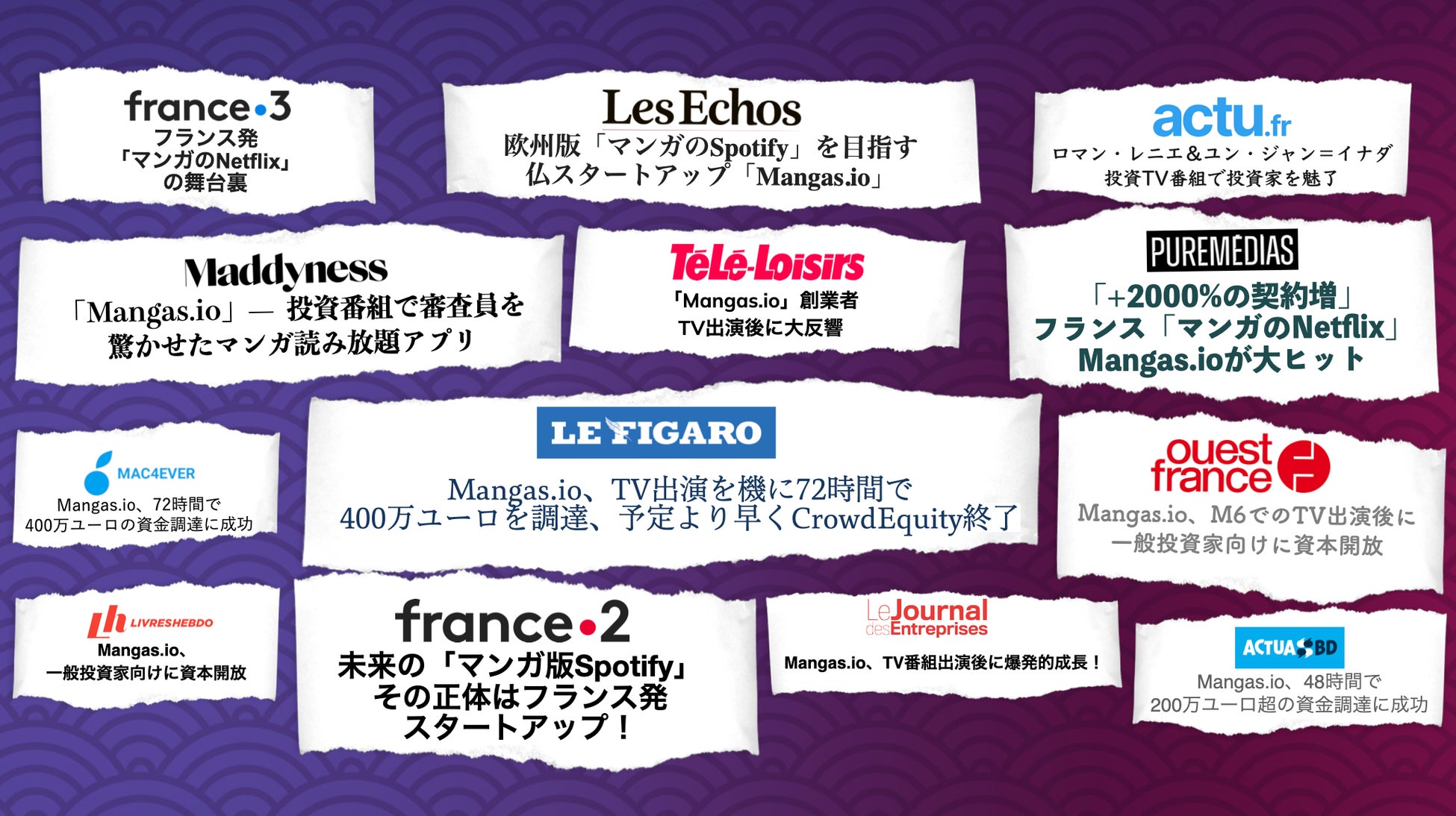 番組放送直後、Mangas.ioのアクセス数は通常の12倍に急増し、サブスクリプション登録数は2000%増加。この急成長を受け、フランスの主要メディアも相次いで報道しました。