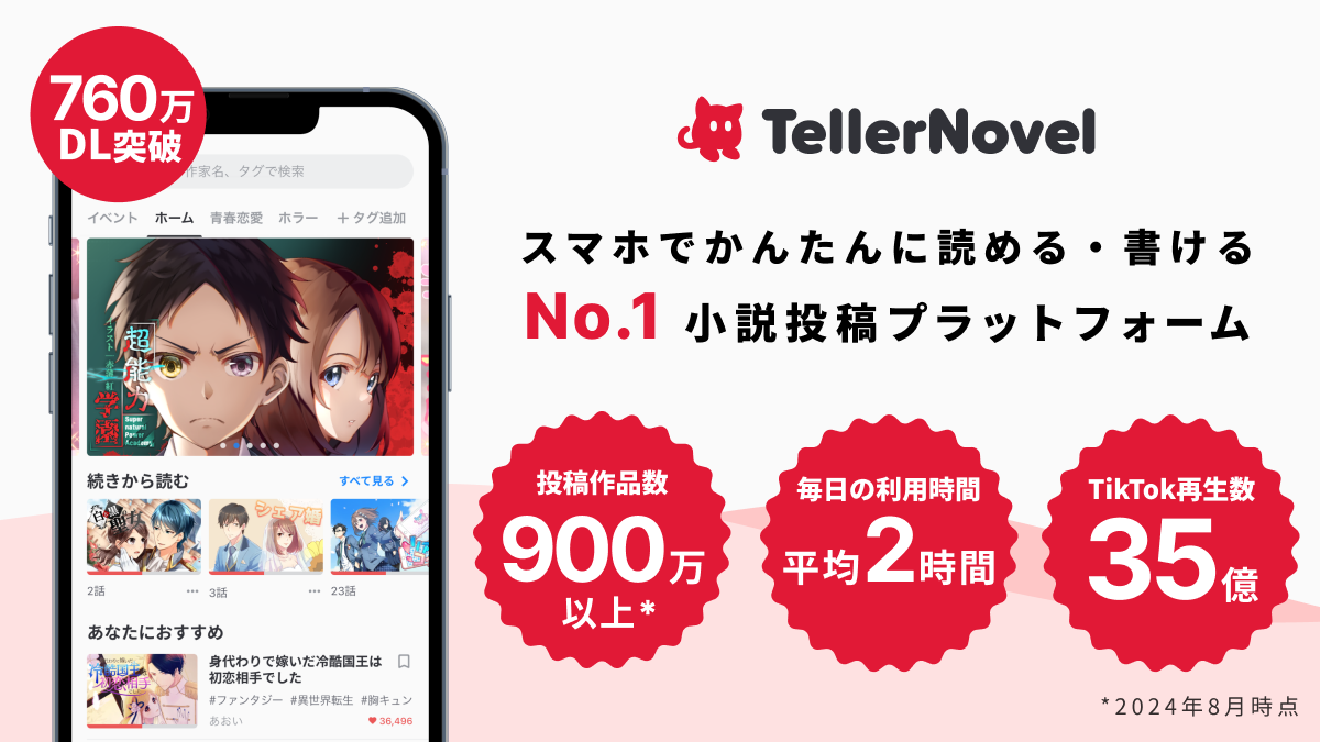 スマホ発小説共有プラットフォーム「テラーノベル」の運営及び、コンテンツIP事業を行うIPテックカンパニーです。