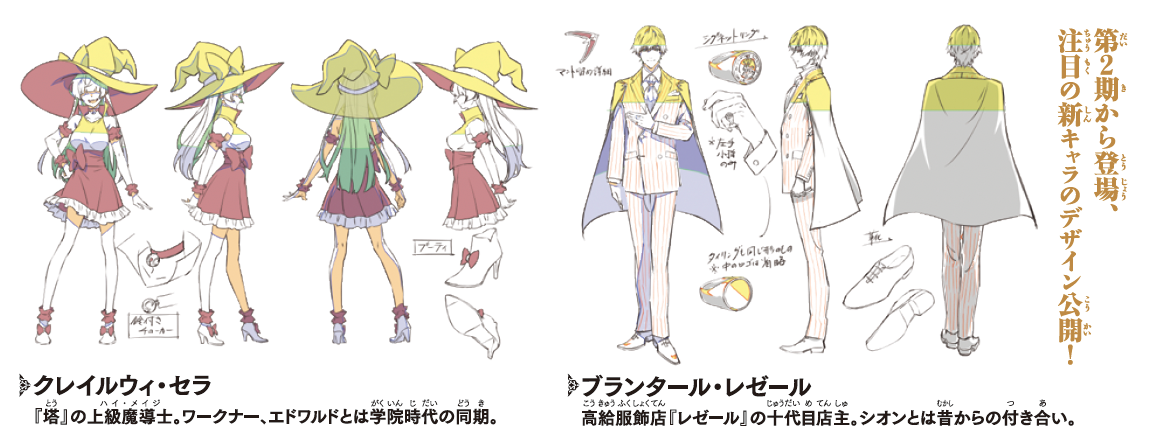 TVアニメ第2期の特報第2弾では、第2期から登場する新キャラクター「クレイルウィ・セラ / ブランタール・レゼール / ディヴェンデ / エマ・クレイバー」のキャラデザインが解禁となりました!