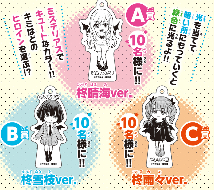 さらに、新章スタートと最新巻の発売を記念して、柊3姉妹「晴海・雨々・雪枝」の蓄光キーホルダーを抽選で30名様にプレゼントいたします!