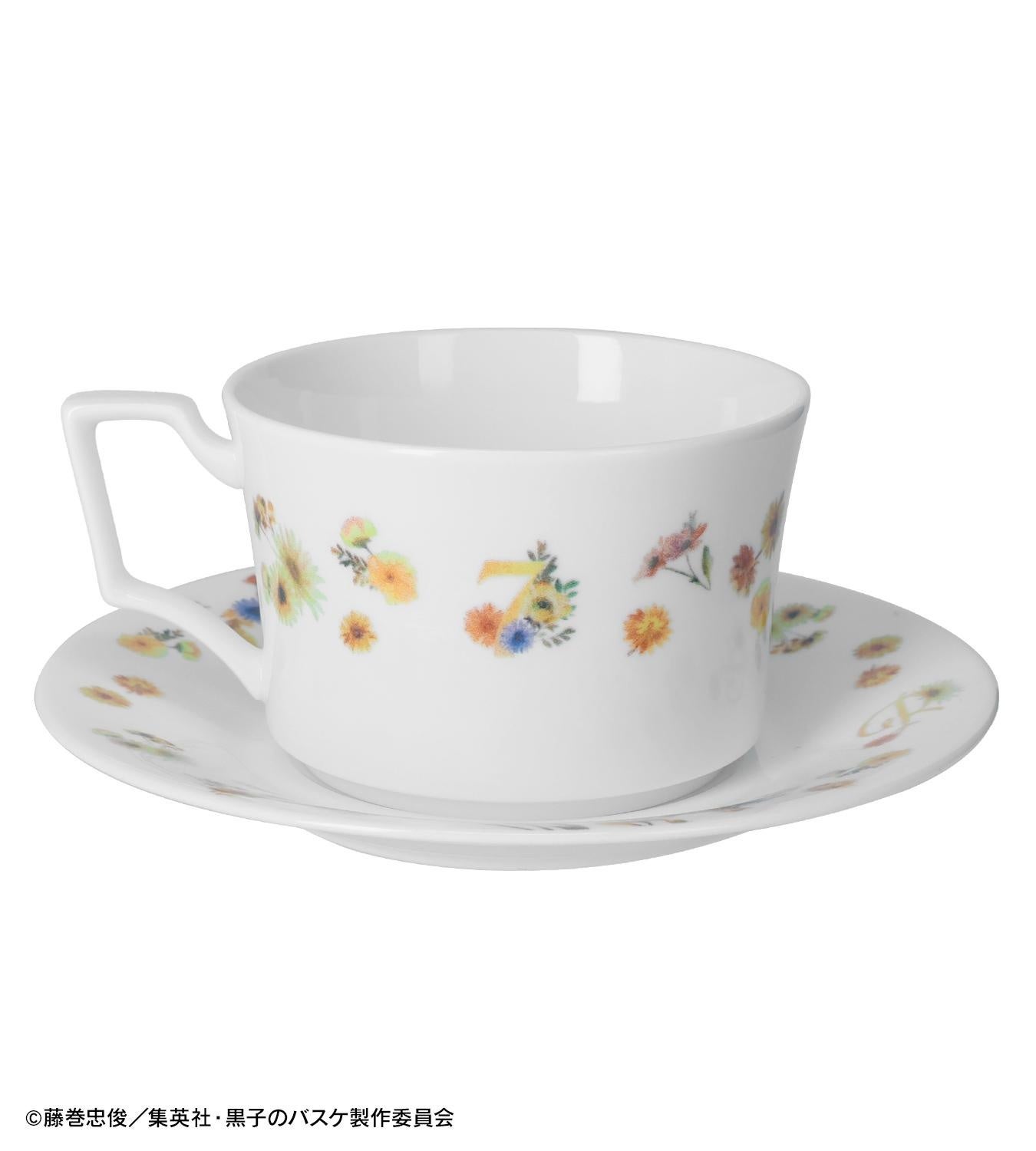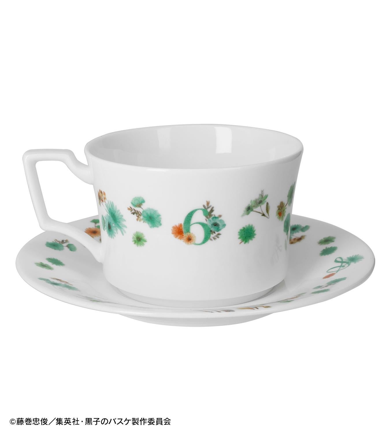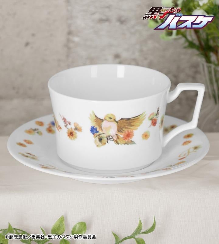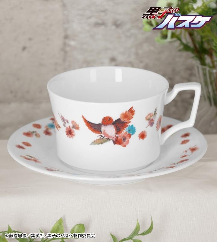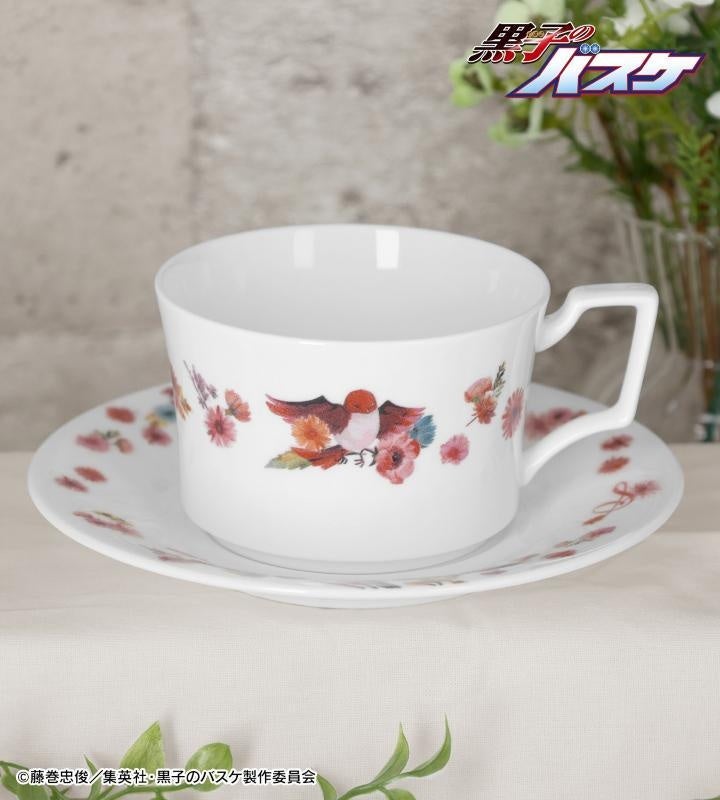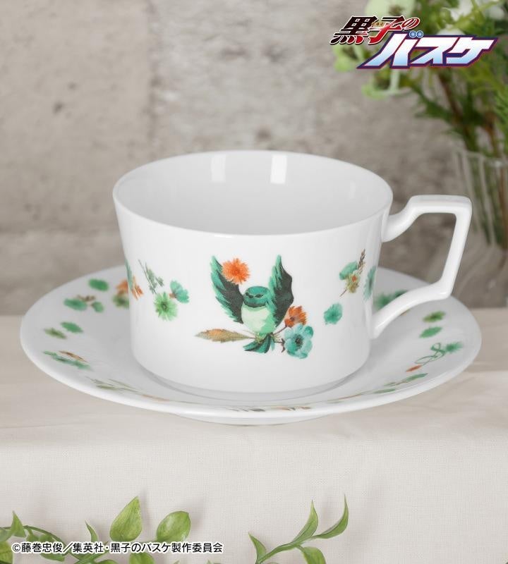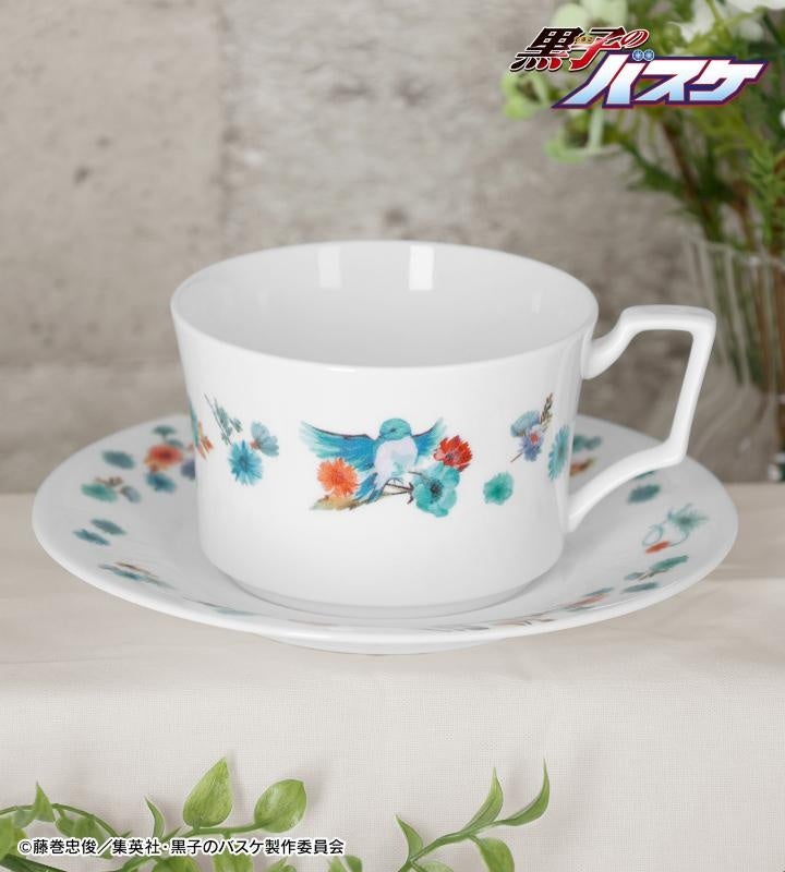 黒子テツヤ、火神大我、黄瀬涼太、緑間真太郎、青峰大輝 、紫原敦、赤司征十郎をイメージした鳥と色鮮やかな花が描かれたカップ&ソーサーです。