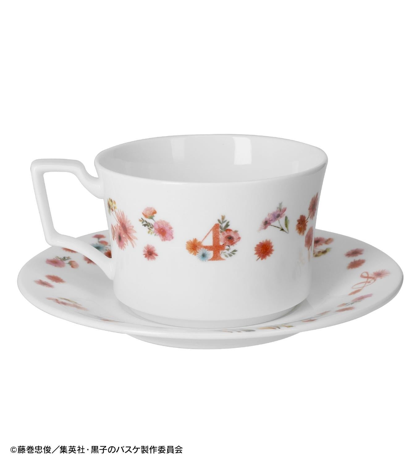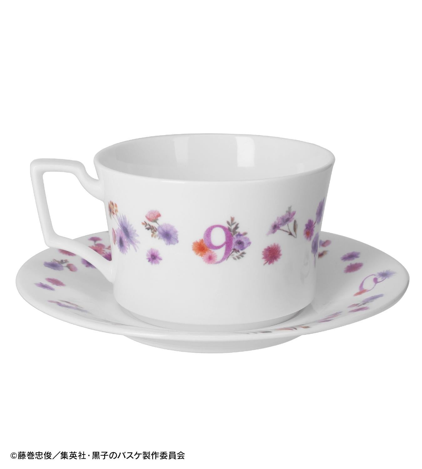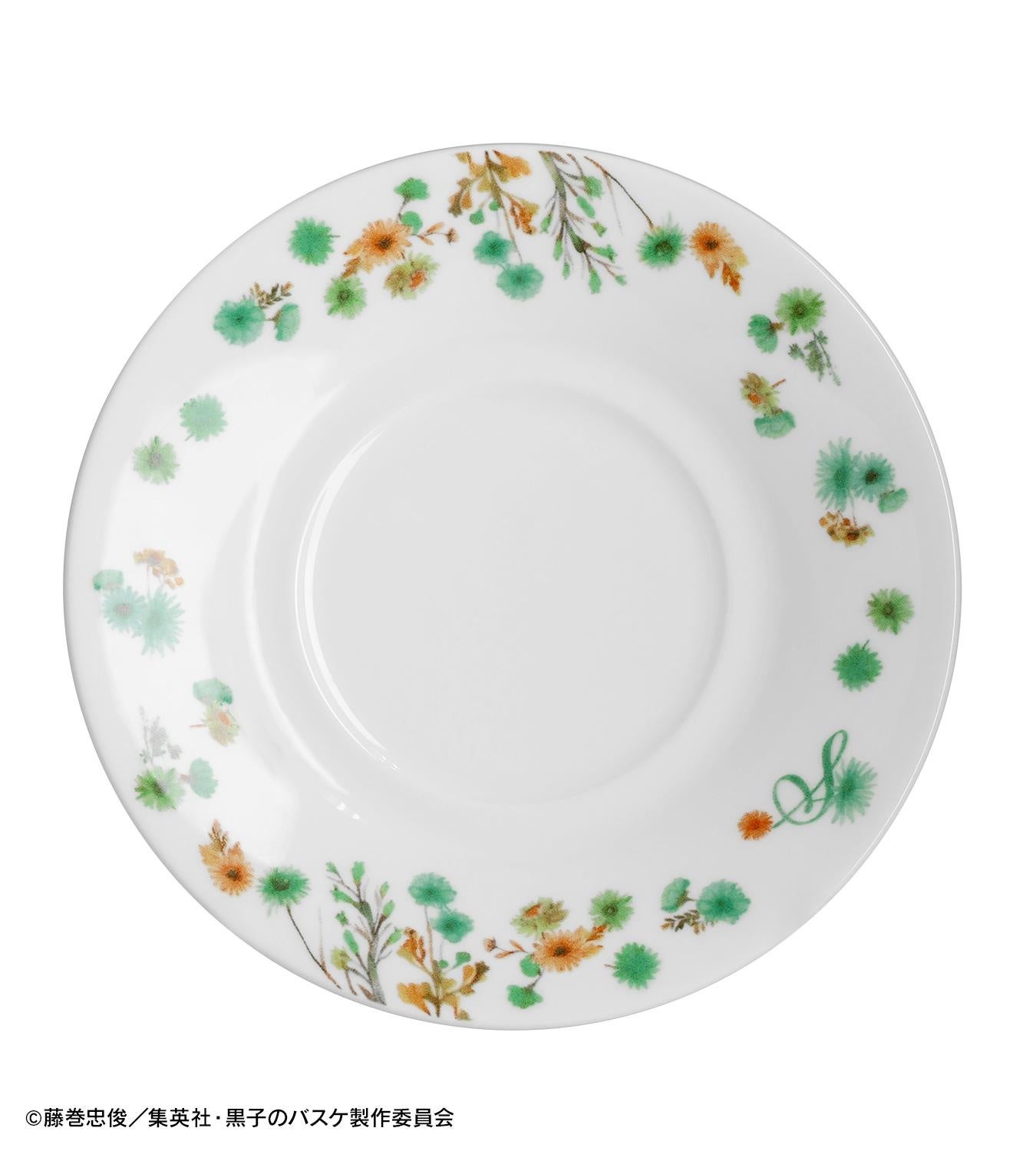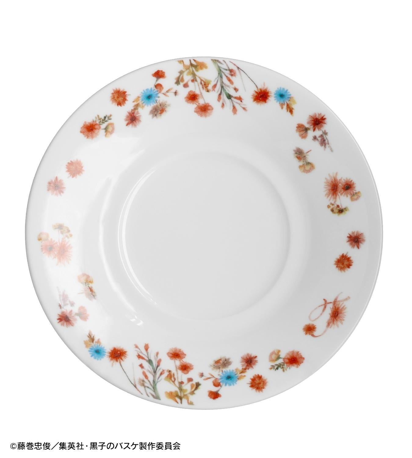 黒子テツヤ、火神大我、黄瀬涼太、緑間真太郎、青峰大輝 、紫原敦、赤司征十郎をイメージした鳥と色鮮やかな花が描かれたカップ&ソーサーです。