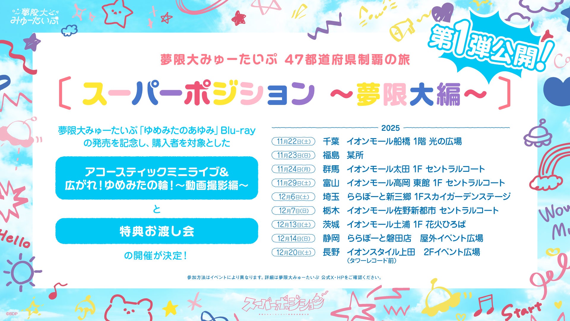 夢限大みゅーたいぷ 47都道府県制覇の旅「スーパーポジション 〜夢限大編〜」としてアコースティックミニライブ(観覧フリー)の実施が決定しました。