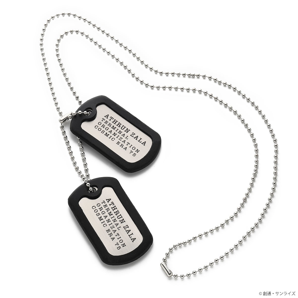 アスラン・ザラ、カガリ・ユラ・アスハモデルのドックタグです。フチを守るゴムのサイレンサー付き、2枚セットでボールチェーンが付属します。