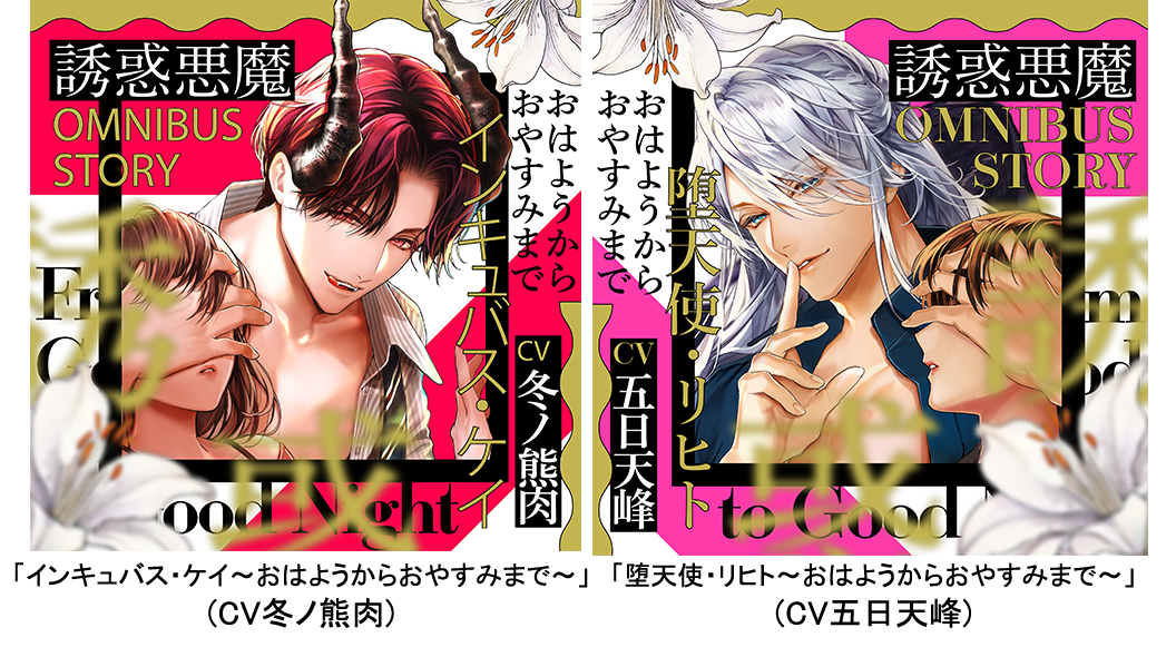 「誘惑悪魔」は貴女を誘惑する悪魔との非日常的な官能シーンと恋愛がお楽しみいただける人気のシチュエーションボイスドラマシリーズです。今回は五日天峰さん演じる堕天使のリヒトとの1日を描いたオムニバス・ストーリーを