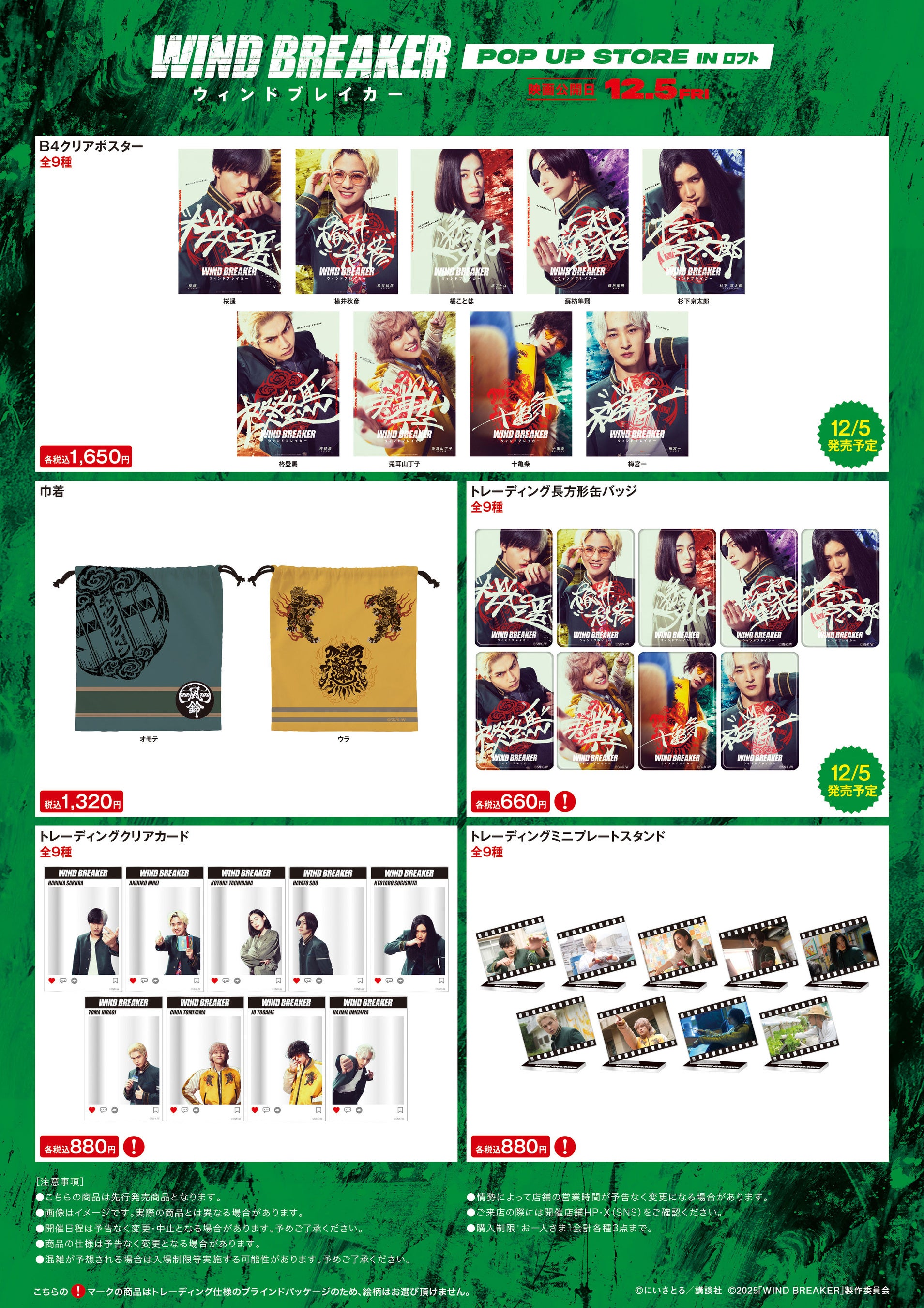映画『WIND BREAKER/ウィンドブレイカー』(配給:ワーナー・ブラザース映画)の12月5日(金)の全国公開を記念してのPOP UP STOREが12月2日(火)~2026年2月15日(日)の期間限定でロフト6店舗にて巡回開催いたします!