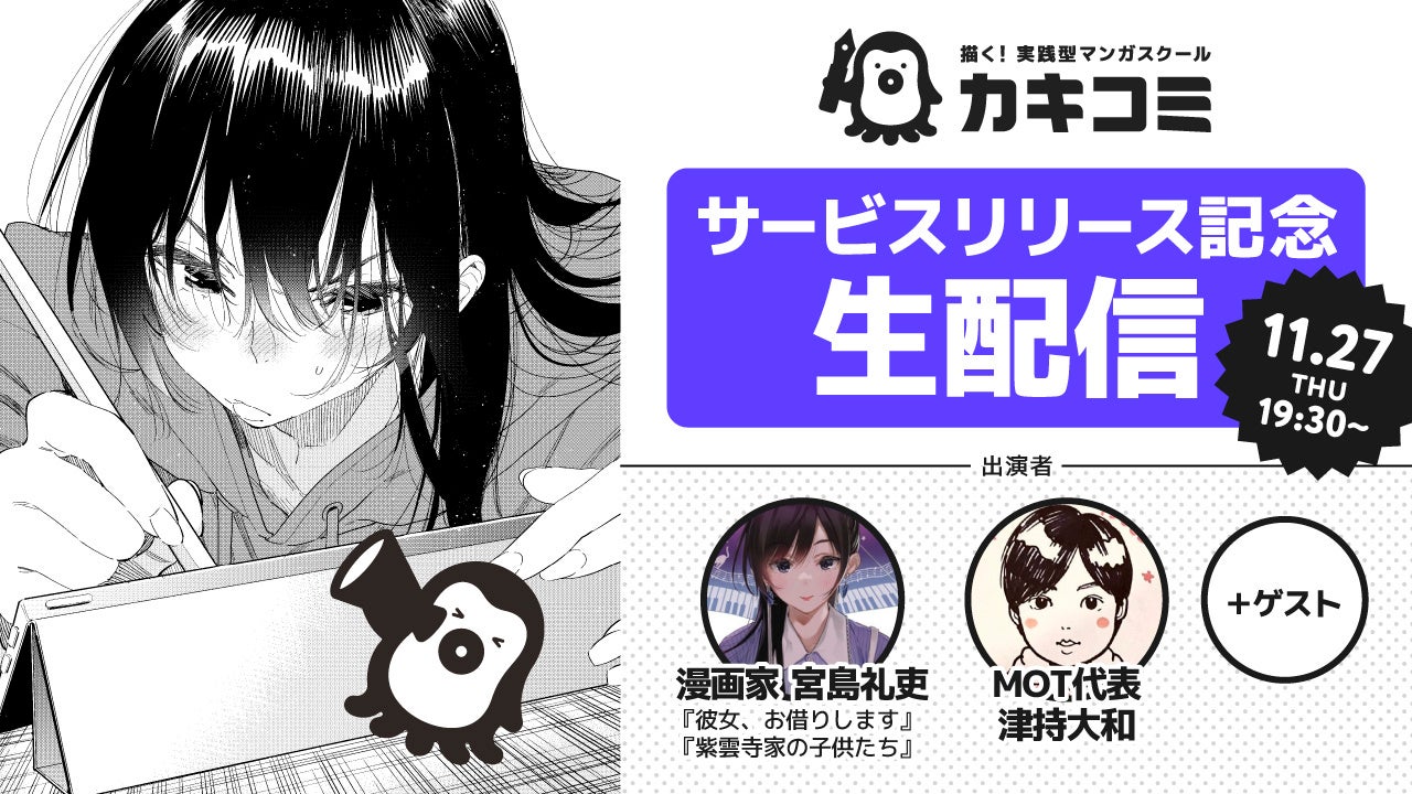 株式会社MOT(本社:東京都新宿区、代表取締役:津持大和)は、現役のプロ漫画家と編集者が指導する、実践型マンガスクール『カキコミ』を開講することをお知らせします。