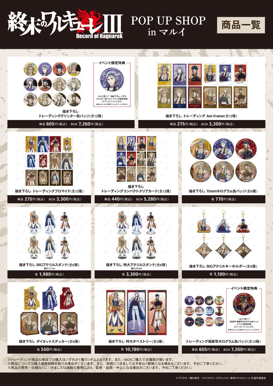 【「アニメ『終末のワルキューレIII』 POP UP SHOP in マルイ」内へのご案内について】
