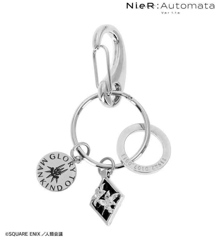 2B、9Sのモチーフデザインのチャームを付けたキーリングです。