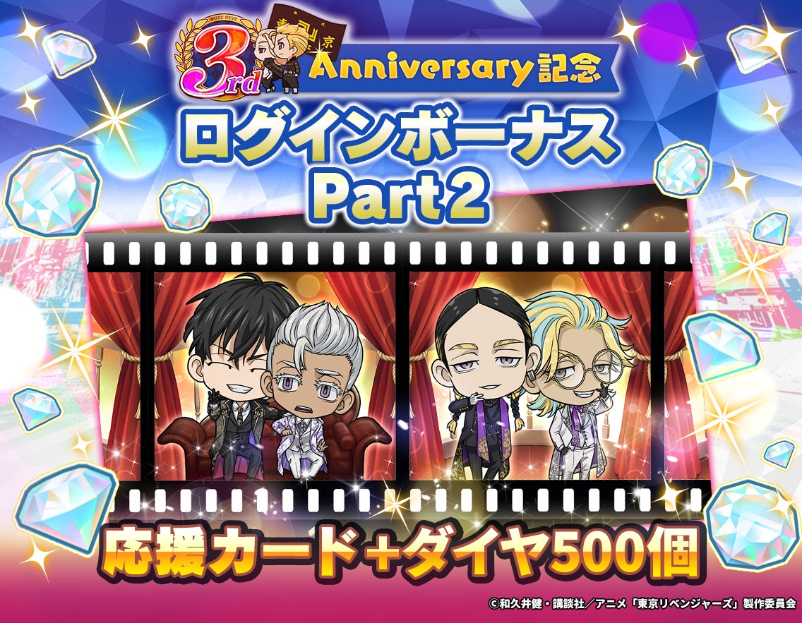 3周年記念の限定ミッションとログインボーナスを実施いたします。