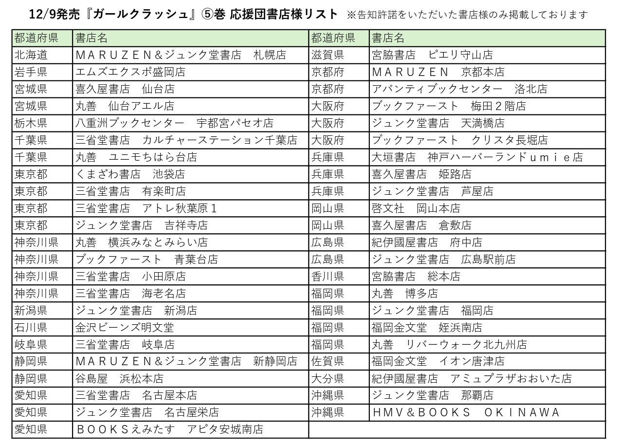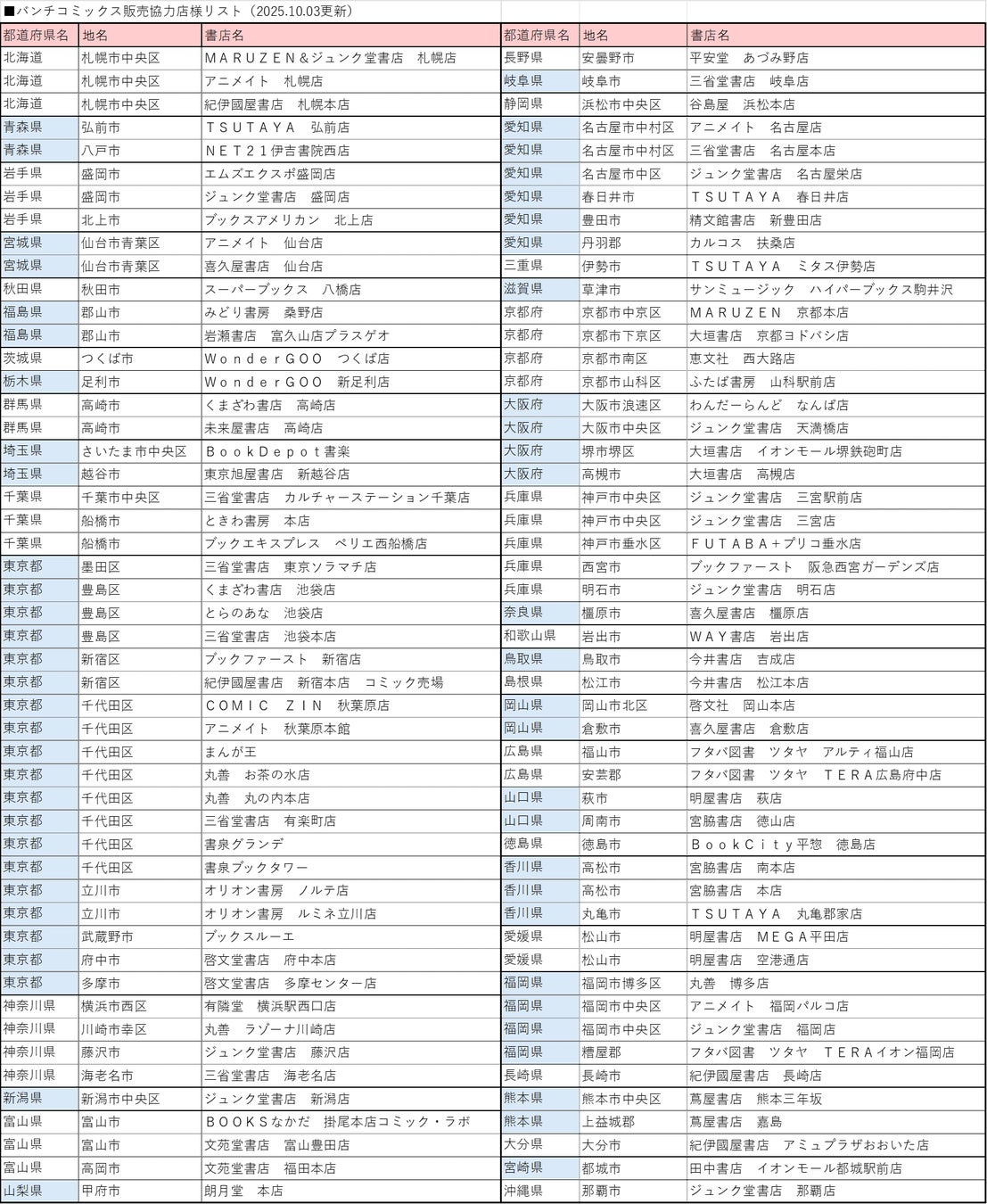 【バンチコミックス販売協力店】【応援団書店】は以下の通りです。