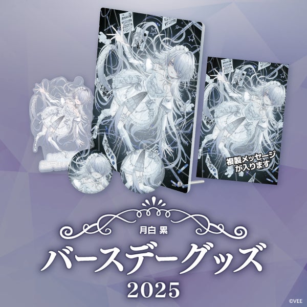 「月白 累」のバースデーグッズは、アクリルパネルとアクリルスタンドと缶バッジ!公式オンラインショップ「VEE Official Shop」にて受注販売!