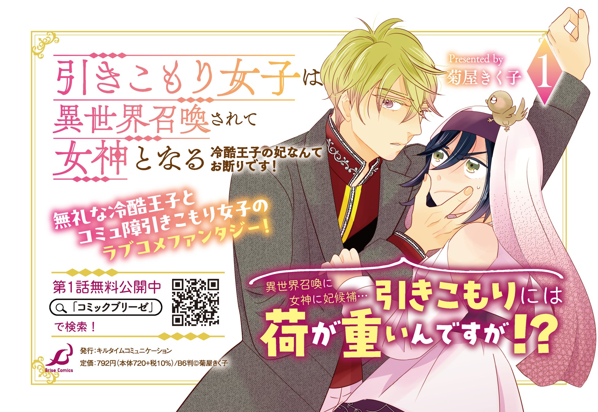 キルタイムコミュニケーションは、ブリーゼコミックス『引きこもり女子は異世界召喚されて女神となる~冷酷王子の妃なんてお断りです!~1』を12月12日に発売いたします。