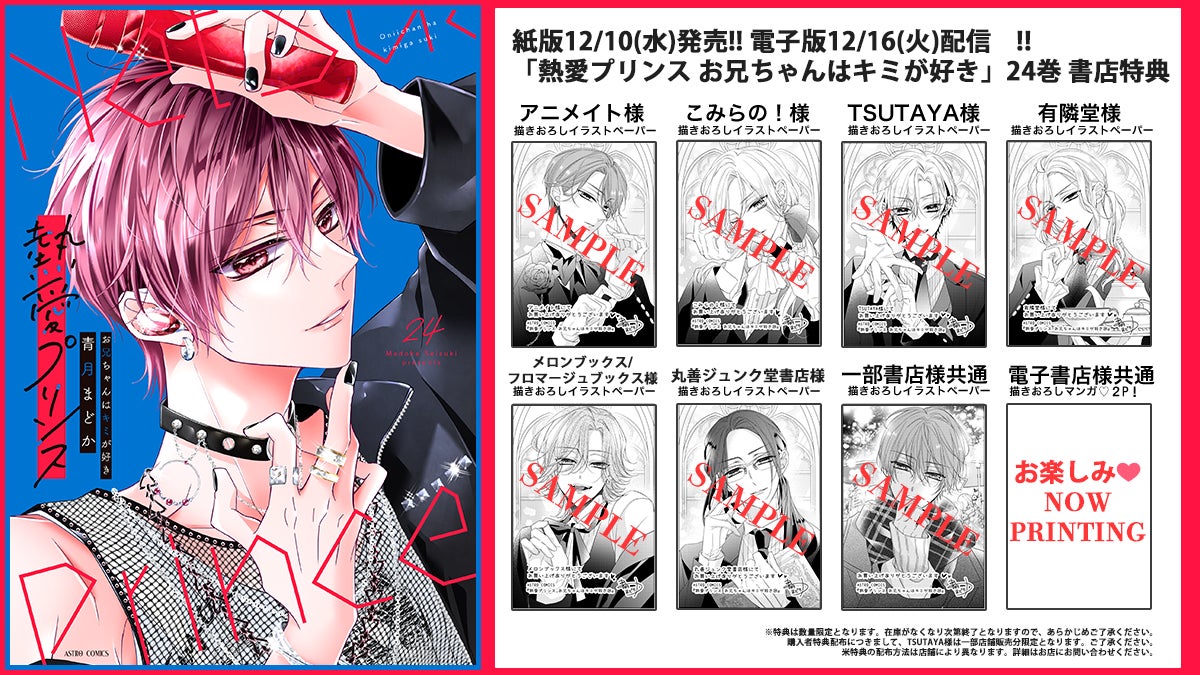 株式会社 宙出版(本社:東京都千代田区、代表取締役社長:大宮敏靖)は、累計250万部を突破した『熱愛プリンス お兄ちゃんはキミが好き』(著:青月まどか)最新24巻を、2025年12月10日(水)にASTRO COMICSより発売いたします。電子版は12月16日(火)より配信開始。
