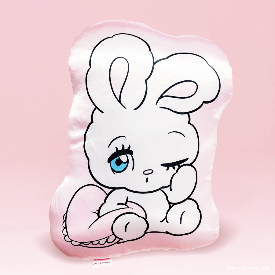 眠そうなバニーが可愛いダイカットクッションです♪触り心地もふかふかです♪おうち時間が楽しくなるデザイン性もマストバイ♡