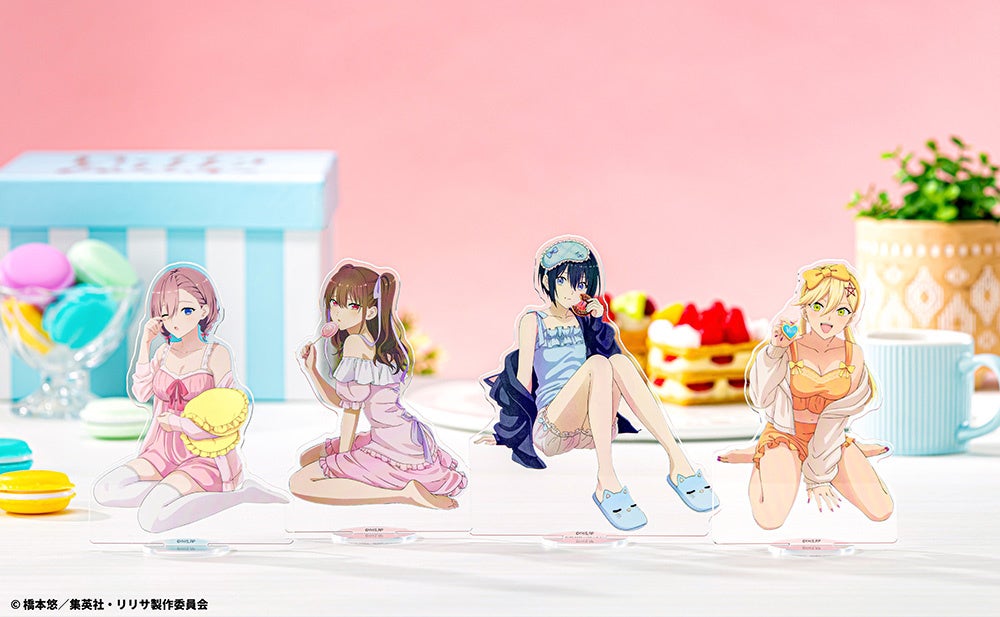 本商品は、「ネグリジェ」衣装をテーマにした限定描き下ろしイラストが全等級に使用されており、TVアニメ「2.5次元の誘惑」に登場する「天乃リリサ」「橘美花莉」「ノノア」「喜咲アリア」の4人がそれぞれ異なるデザインのネグリジェ姿で登場します。キャラクターごとの個性や可愛らしさが際立つイラストを多彩なアイテムで展開し、ここでしか手に入らない特別なグッズからキャラクターの魅力を存分にお楽しみいただけます。
