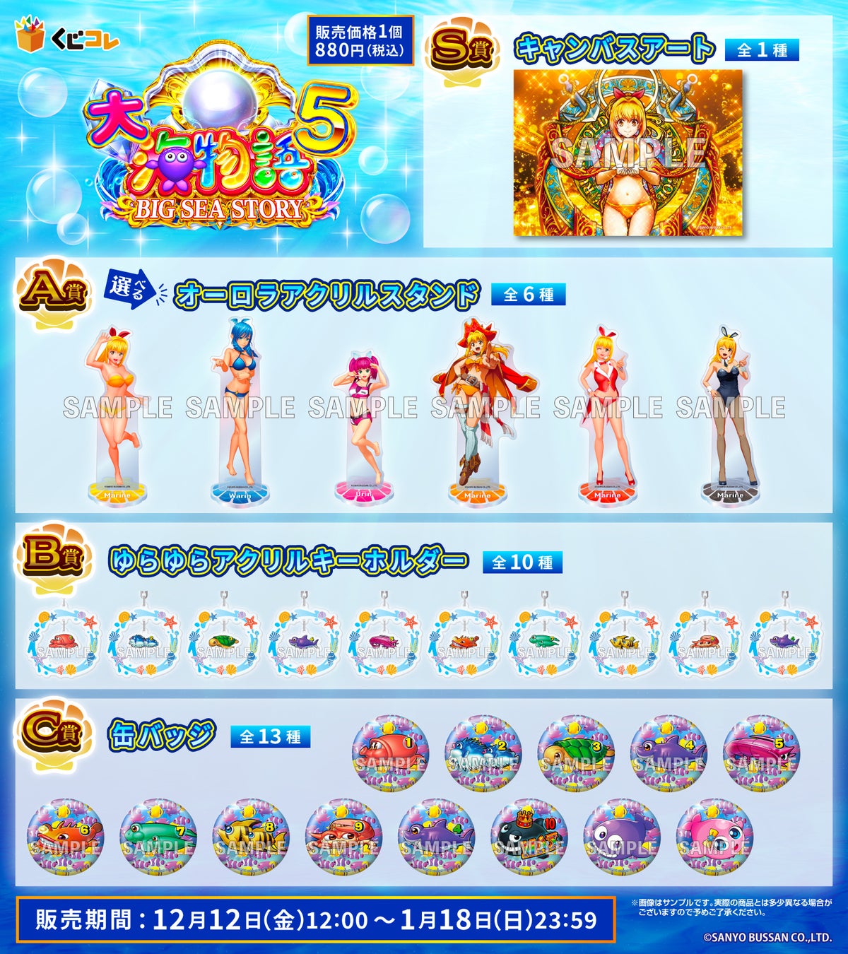 株式会社エディア(本社:東京都千代田区、代表取締役社長:賀島 義成)の子会社、株式会社ティームエンタテインメント(本社 :東京都千代田区、代表取締役社長 :賀島 義成 以下 :ティームエンタテインメント)は、2025年12月12日(金)12:00より『P大海物語5』のオリジナルグッズを、インターネットで購入できるオンラインくじサービス『くじコレ』にて販売開始したことをお知らせいたします。