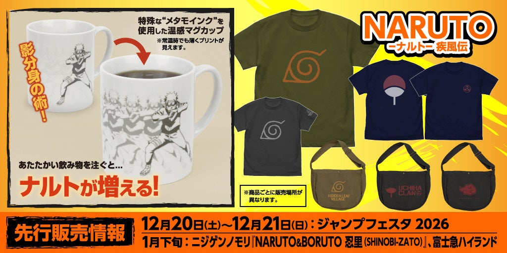 先行販売:2025年12月20日(土)・21日(日)〈ジャンプフェスタ2026〉コスパブース、2026年1月下旬〈ニジゲンノモリ『NARUTO&BORUTO 忍里(SHINOBI-ZATO)』〉〈富士急ハイランド〉