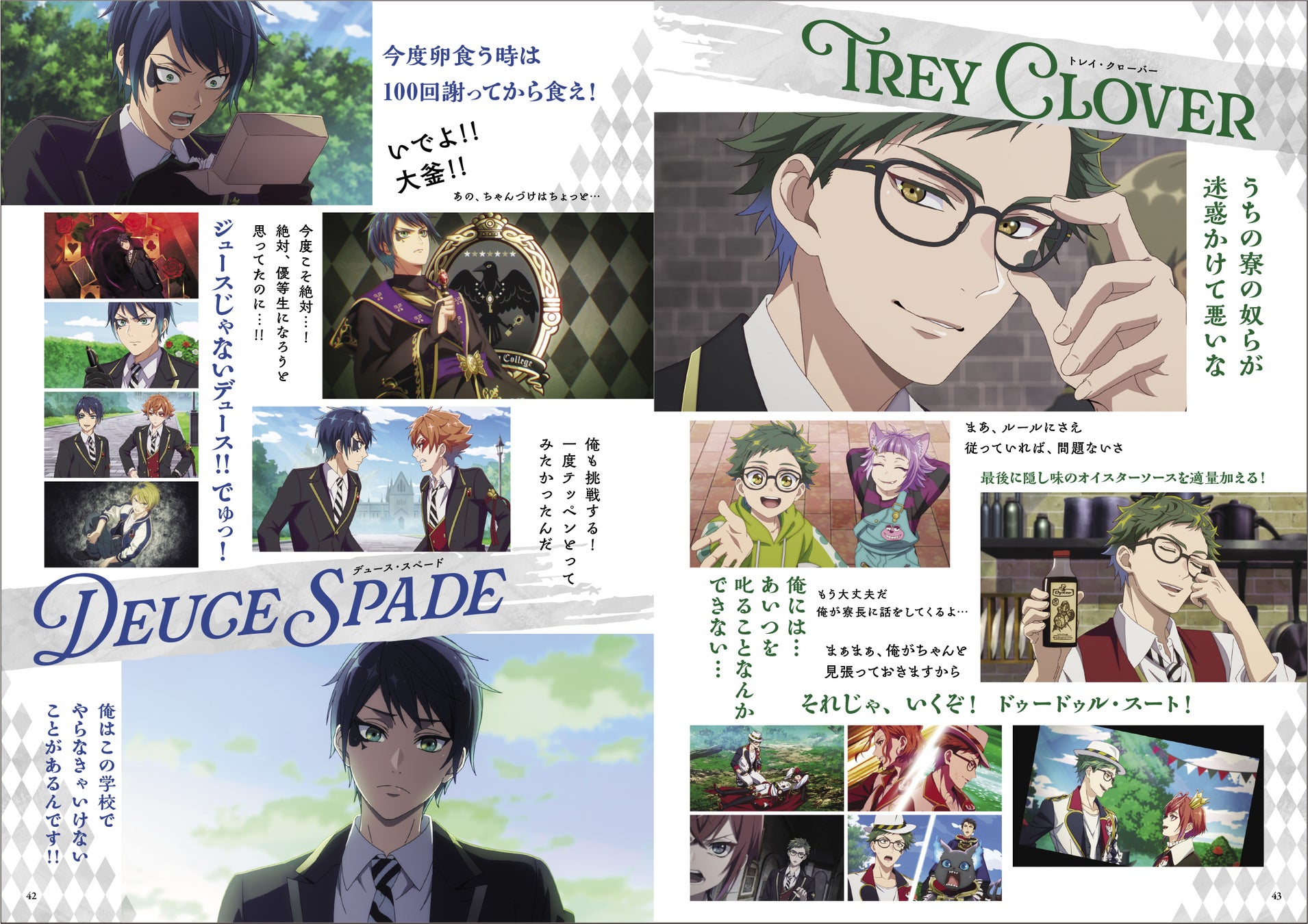 また、この本でしか読めない「エピソード オブ ハーツラビュル」で活躍するボイスキャストのインタビューページには要注目です。8名のボイスキャストに、アニメーション化への想い、演じるキャラクターのこと、「ツイステ」の魅力などをうかがいました。撮りおろしの写真とともに、大ボリュームでお届けしています。
