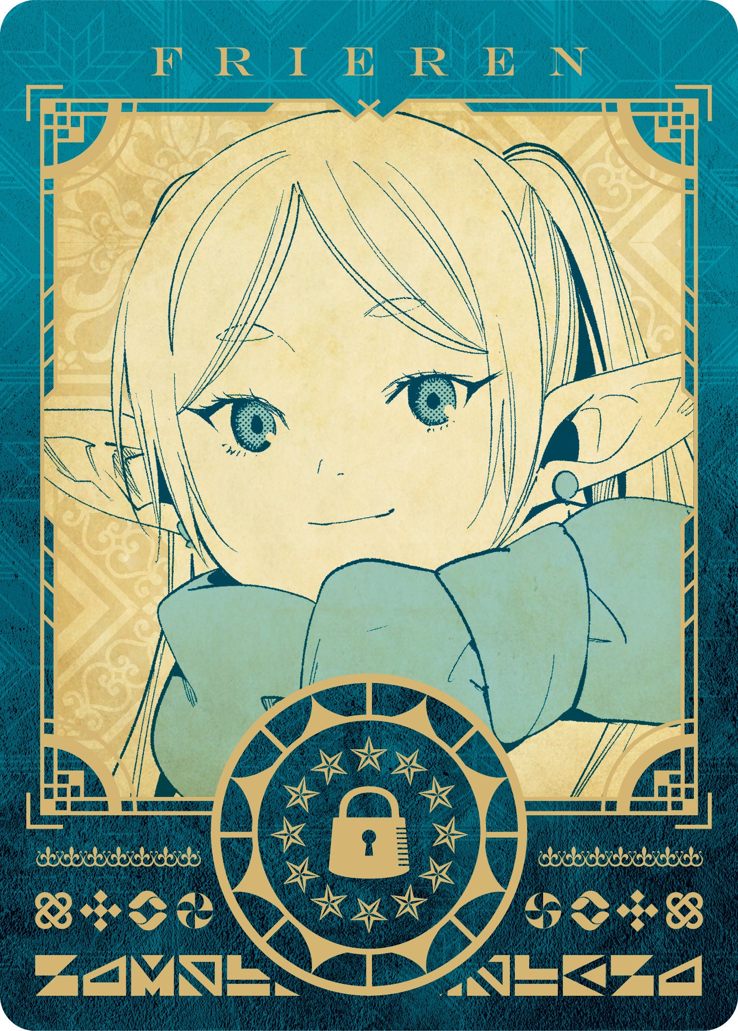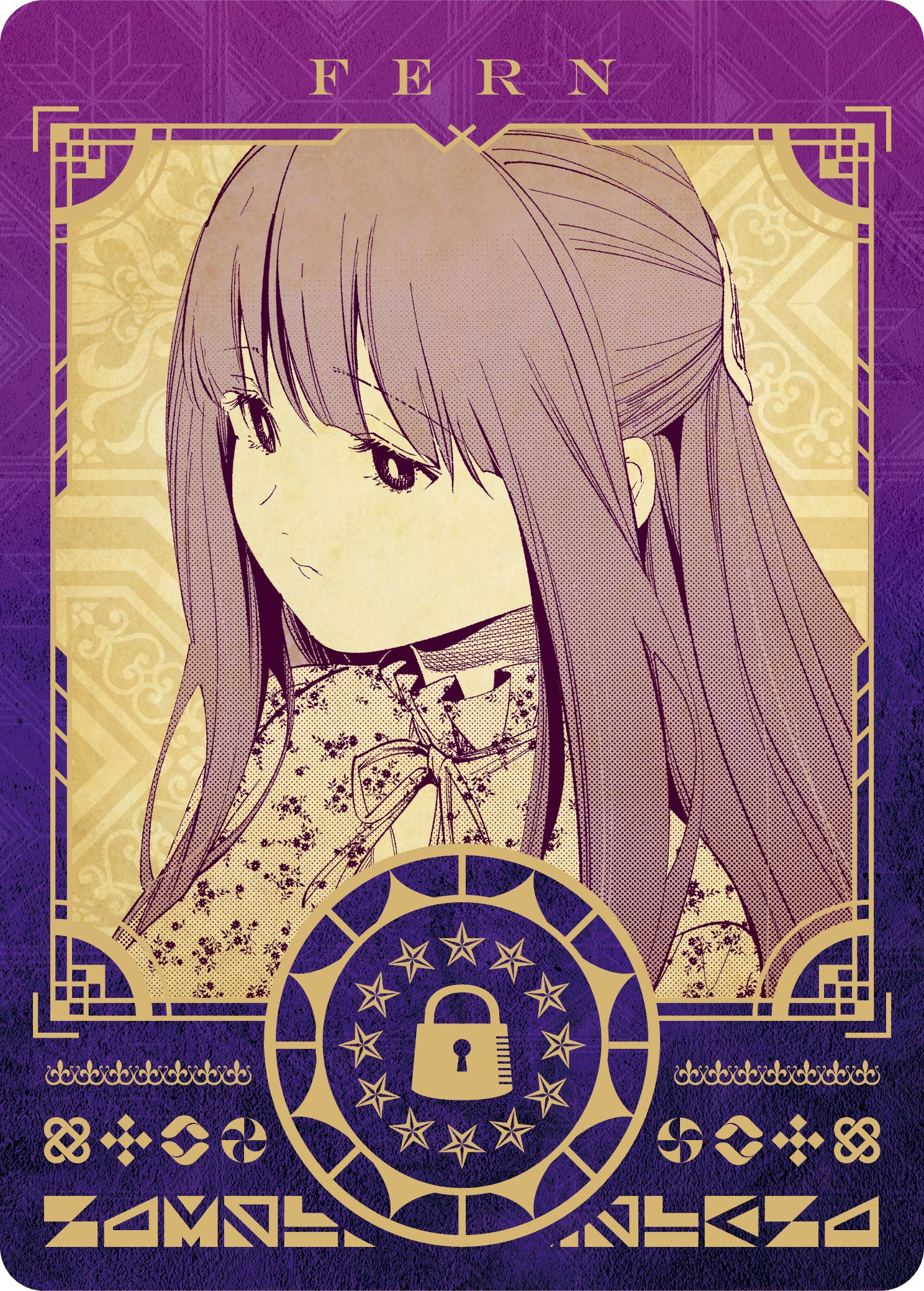 フリーレンをはじめヒンメル、フェルン、シュタルクらのおなじみキャラだけでなく、ヴィアベルや初登場の南の勇者など全8種。豪華なARとこのために録りおろしたオリジナル台本のボイスが聞ける特別仕様です。注目はフリーレンとヒンメル、フェルンとシュタルクの二人のカラーイラストの2枚。このカードから聞けるボイスは、当然二人の掛け合いボイスで必聴です!