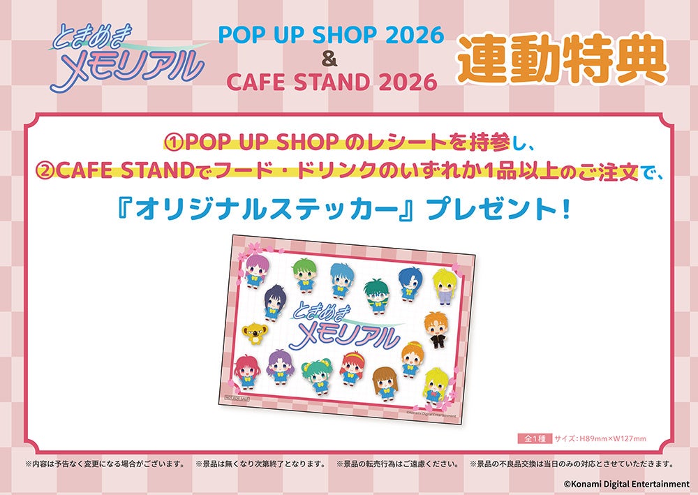 株式会社コンテンツシード(本社:東京都品川区、代表取締役:大塚 則和)は、2026年1月16日(金)より新宿マルイ アネックス 6Fで開催される「ときめきメモリアル POP UP SHOP 2026」、ならびに東京ドームシティにて開催される「ときめきメモリアル CAFE STAND 2026」にて、KONAMIのゲーム『ときめきメモリアル』の関連商品を販売いたします。