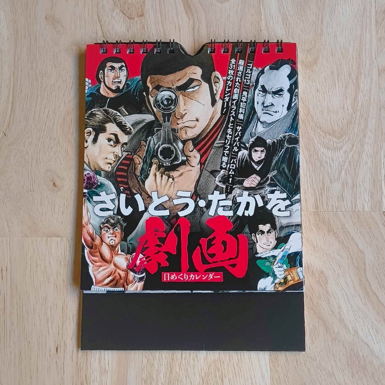 『ゴルゴ13』『鬼平犯科帳』『サバイバル』『バロム・1』など、厳選された劇画イラストと名セリフで贈る全31枚の日めくりカレンダーです。