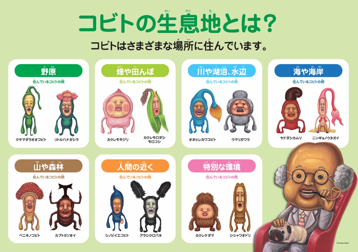 コビトたちの生息地について、クイズ形式で楽しく解き明かしていく展示です。私たちの近くに住むコビトや、自然界に住んでいるコビトなど、さまざまな場所に住んでいるコビトの生活をのぞいてみてね!