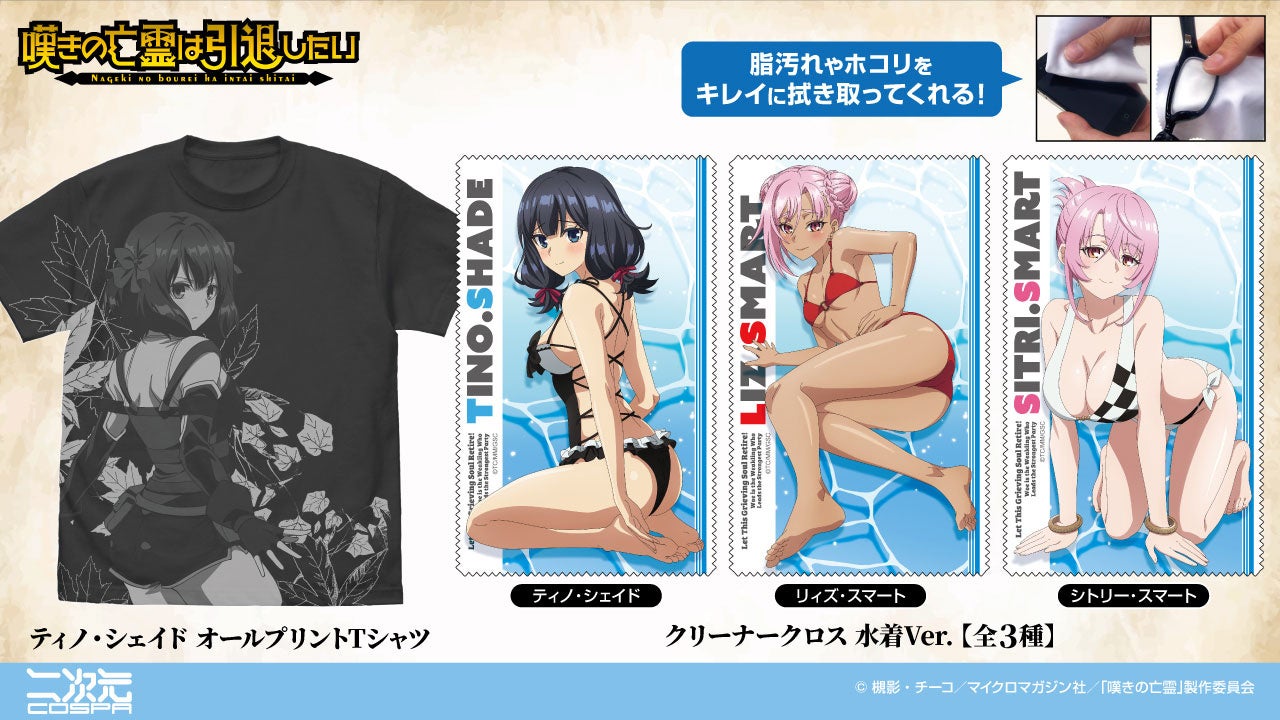公式キャラクターコスチュームやアパレル・グッズの企画、開発、製造を行う株式会社コスパ(所在地:東京都渋谷区、代表取締役:松永芳幸)は『嘆きの亡霊は引退したい』グッズを発表した。