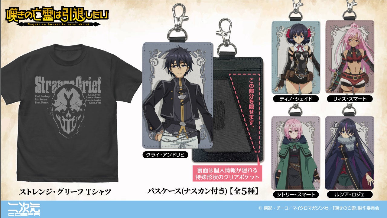 公式キャラクターコスチュームやアパレル・グッズの企画、開発、製造を行う株式会社コスパ(所在地:東京都渋谷区、代表取締役:松永芳幸)は『嘆きの亡霊は引退したい』グッズを発表した。