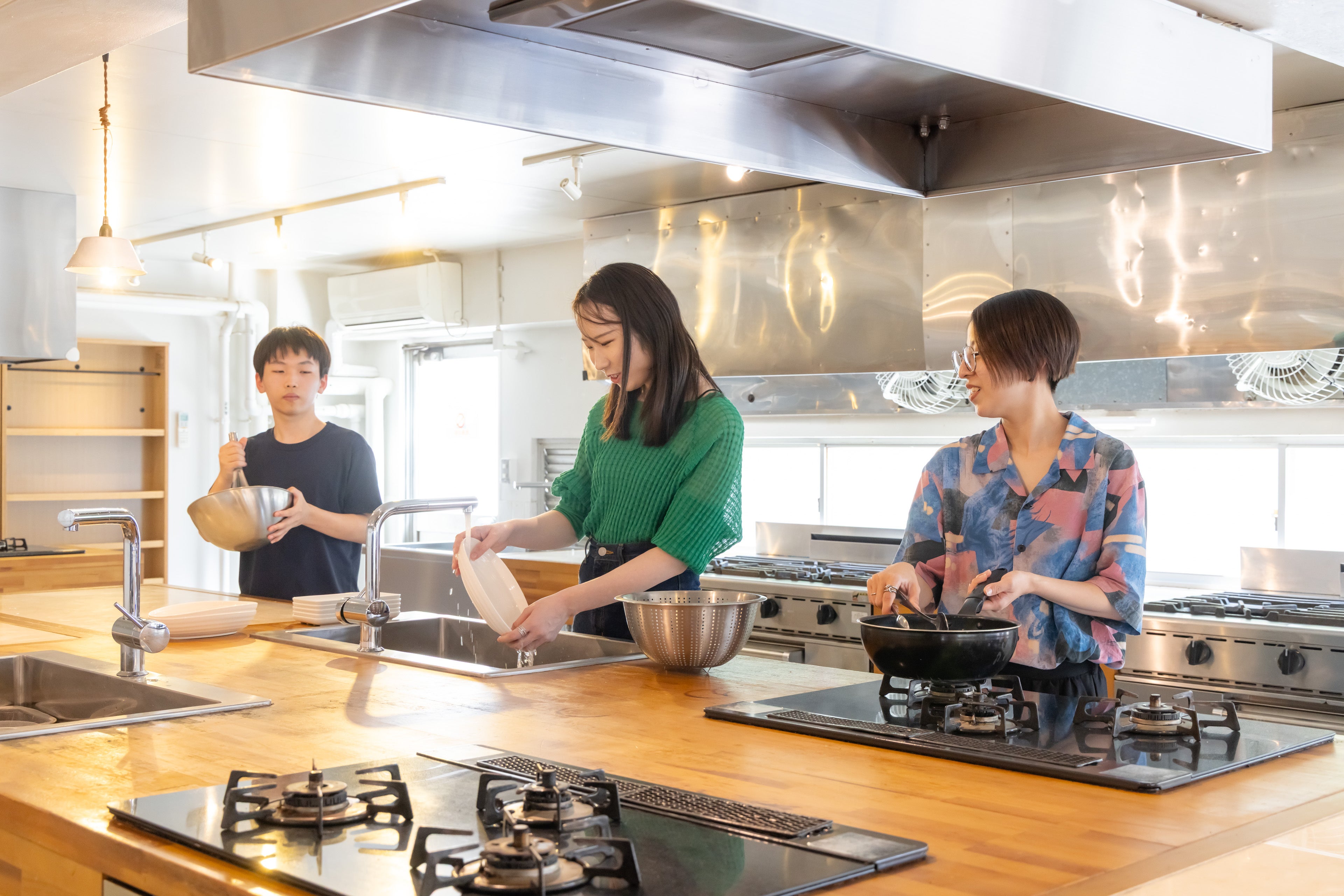 コミュニティによる相乗効果: 大規模ハウスならではの層の厚いコミュニティが存在。20代から40代まで、マンガ家志望者から連載作家まで幅広い作家が居住し、自分にとっての仲間やライバルがすぐに見つかる環境です。日常的な会話から生まれるネームのヒントや、技術的なアドバイスの交換など、一人では得られない刺激が日々繰り返されています。広いキッチンでの交流も大変人気です。