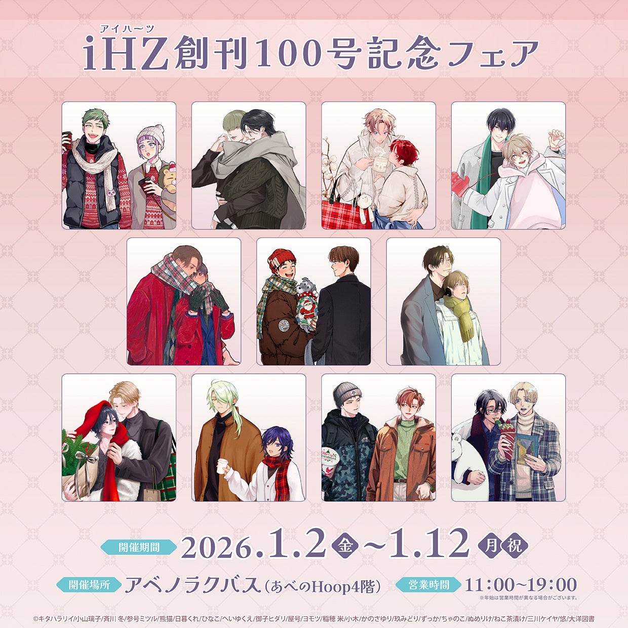 株式会社大洋図書から発売しているBL雑誌「iHZ[アイハーツ]」創刊100号を記念した特別描き下ろし掲載!新作も続々スタート!!