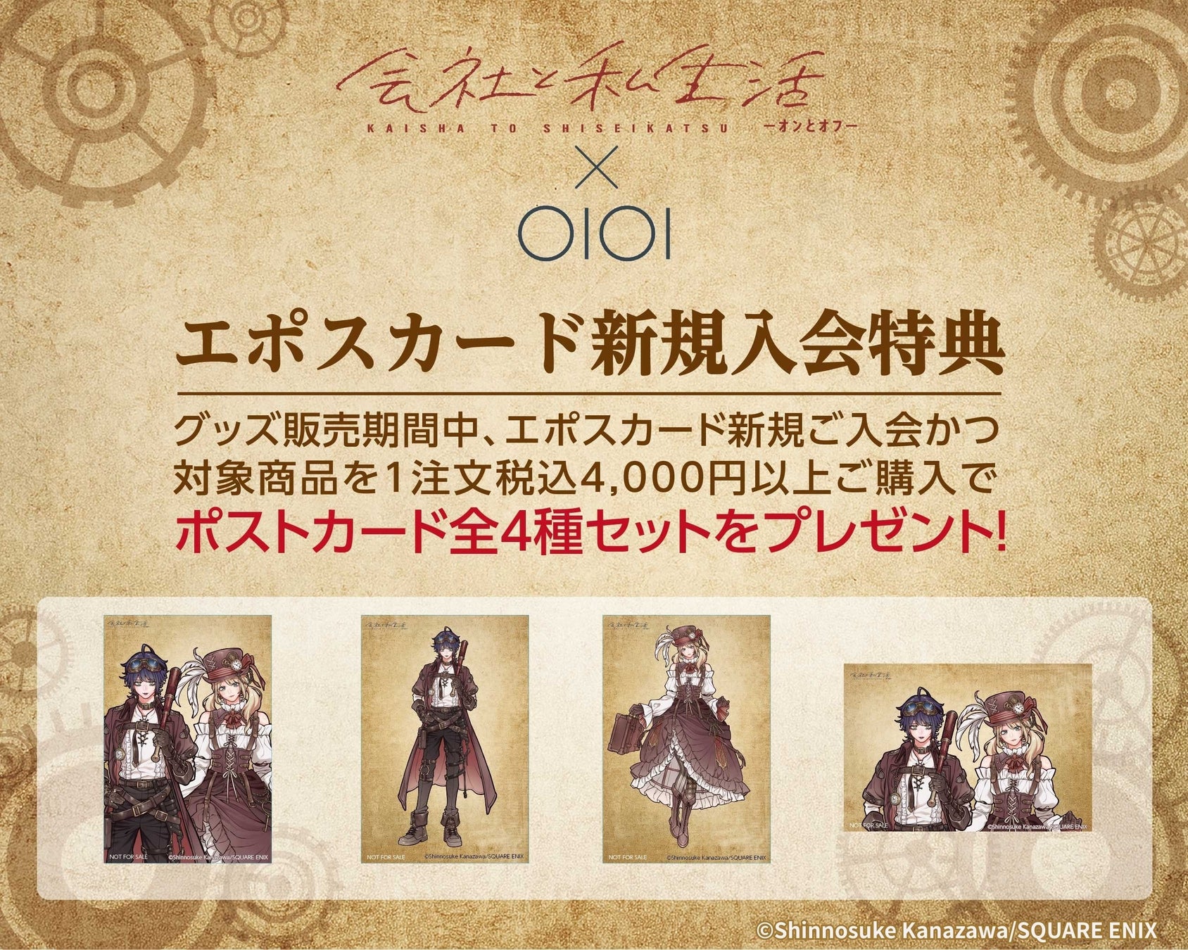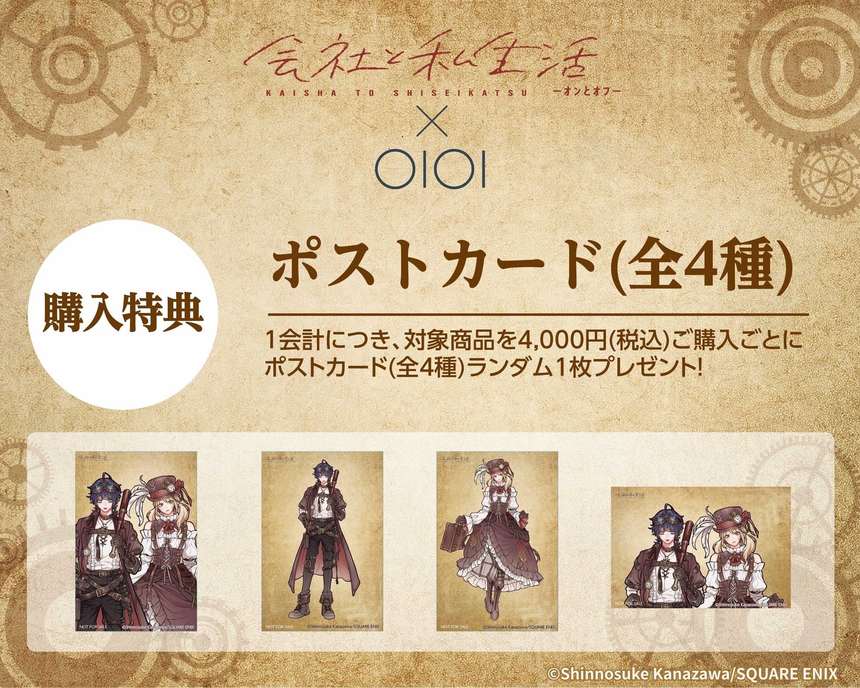 「『会社と私生活-オンとオフ-』スチームパンク描き下ろしグッズコレクション by OIOI」商品を4,000円(税込)ご購入ごとに、描き下ろしイラストを使用したポストカード(全4種)をランダムで1枚プレゼントいたします。