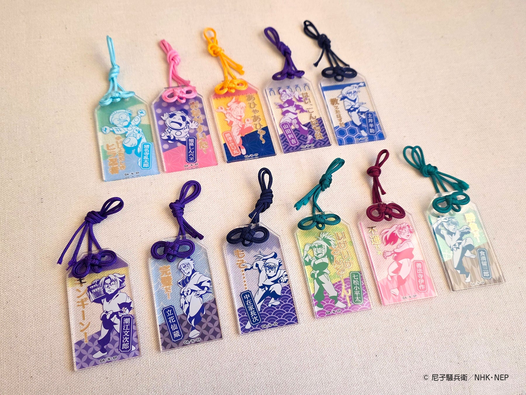 「キャラクター×日本の伝統」をテーマに展開するブランド「キャラディショナルトイ」より、「忍たま乱太郎」のキャラクターイラストを使用したお守り風箔押しアクリルチャームを発売。