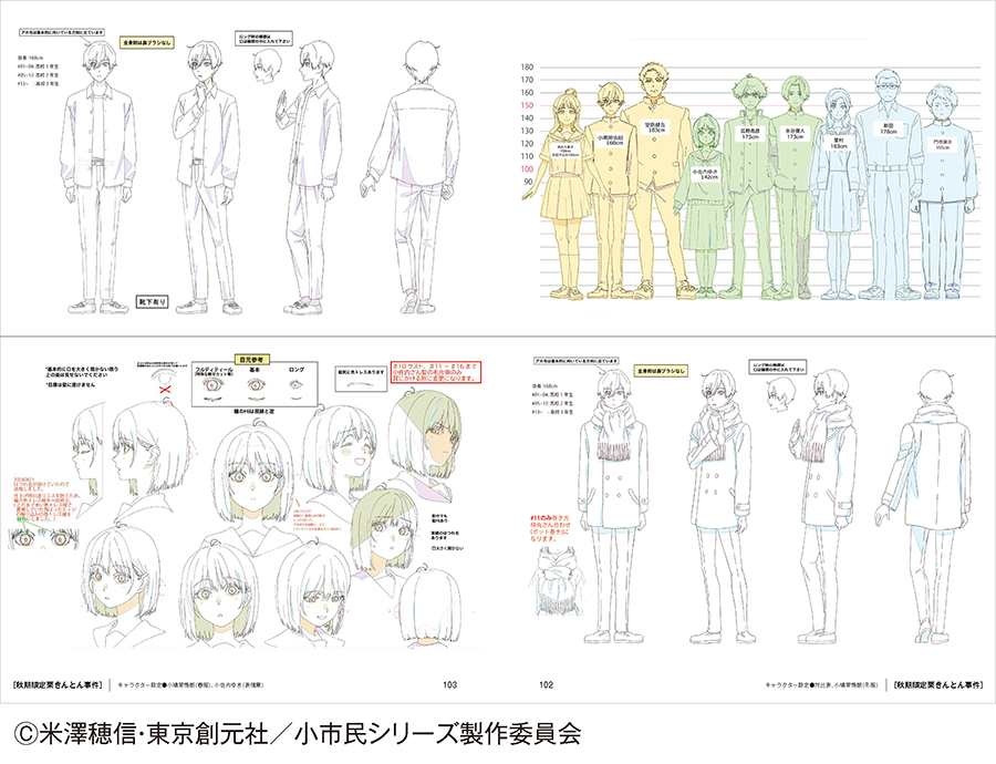 本書籍「TVアニメ『小市民シリーズ』資料集」はTVアニメ『小市民シリーズ』の制作過程で作成された資料を集めた資料集です。線画設定(キャラクターデザイン、美術設定、プロップ設定)、美術ボード、本編及びオープニングの絵コンテ(抜粋)、総作画監督による作監修正(ヒロイン・小佐内さんの原画をたっぷり載せました)、作画注意事項等、他では見ることができない資料を大量に収録。巻末では遠藤一樹プロデューサーによるインタビューで、メイキングや各スタッフの活躍が語られています。
