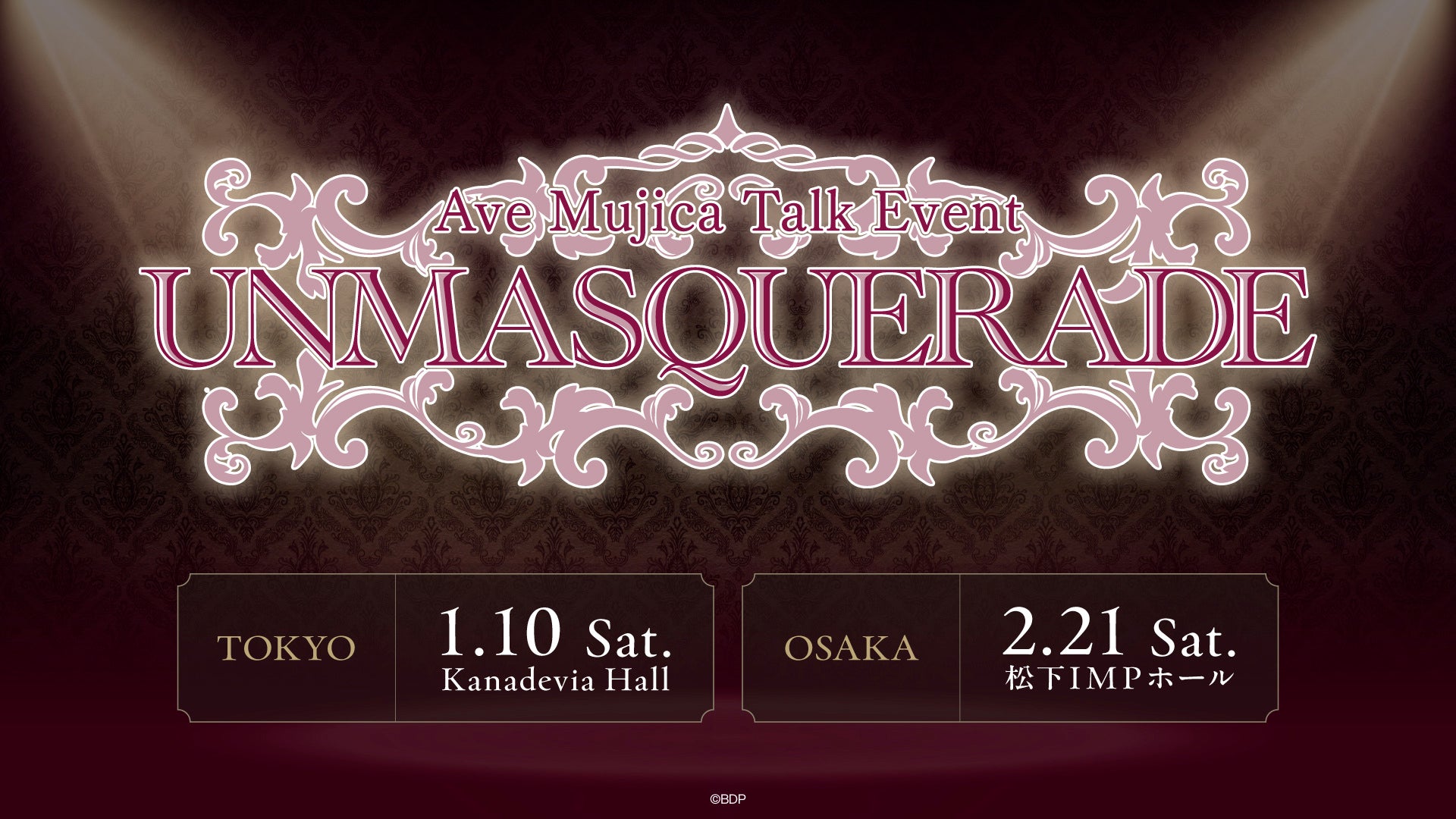 2026年1月10日(土)にKanadevia Hall、2月21日(土)に松下IMPホールにて、Ave Mujica トークイベント「UNMASQUERADE」を開催します。現在、チケット一般発売が受付中です。