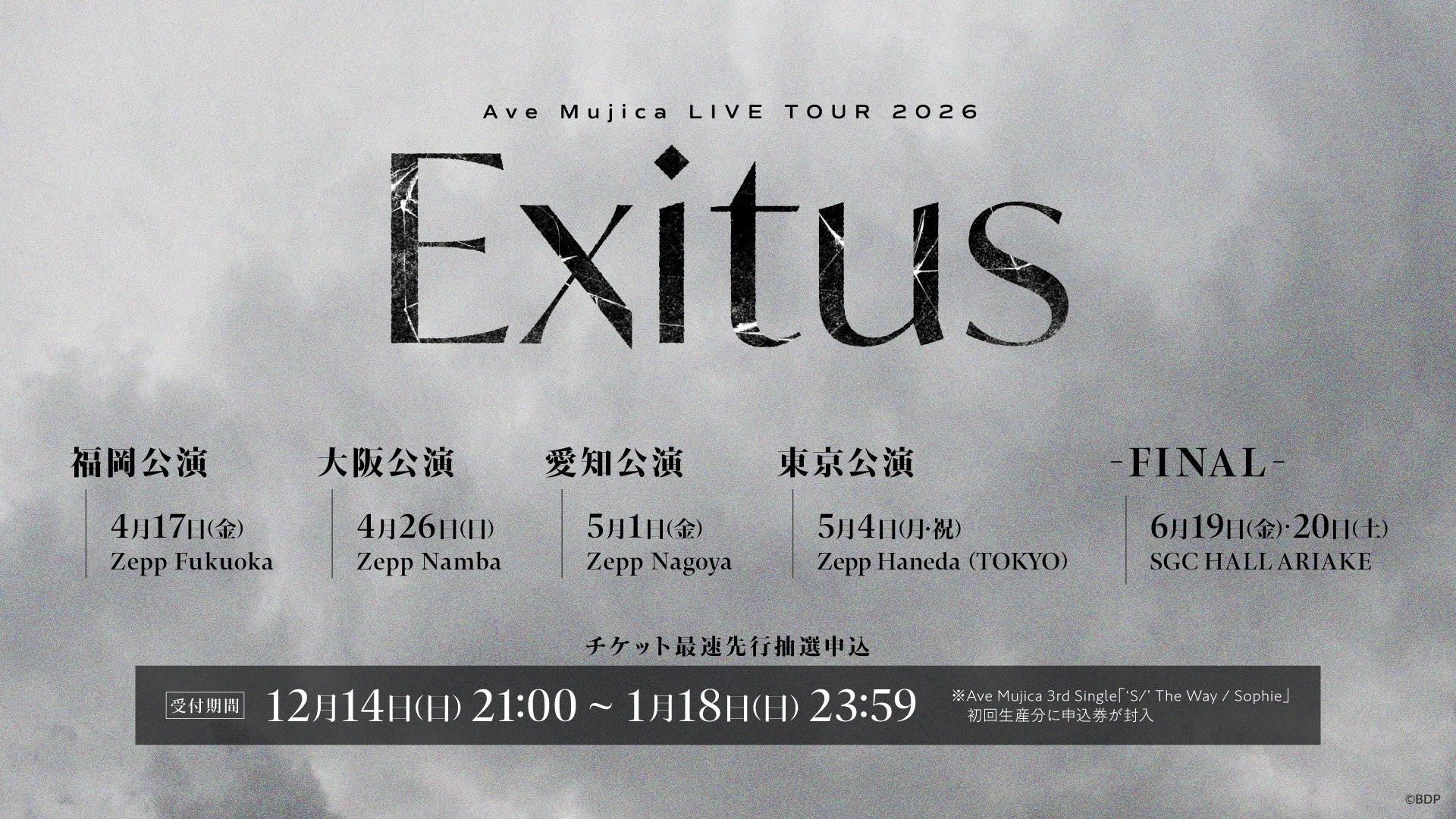 ■Ave Mujica LIVE TOUR 2026「Exitus」 チケット最速先行抽選申込受付中