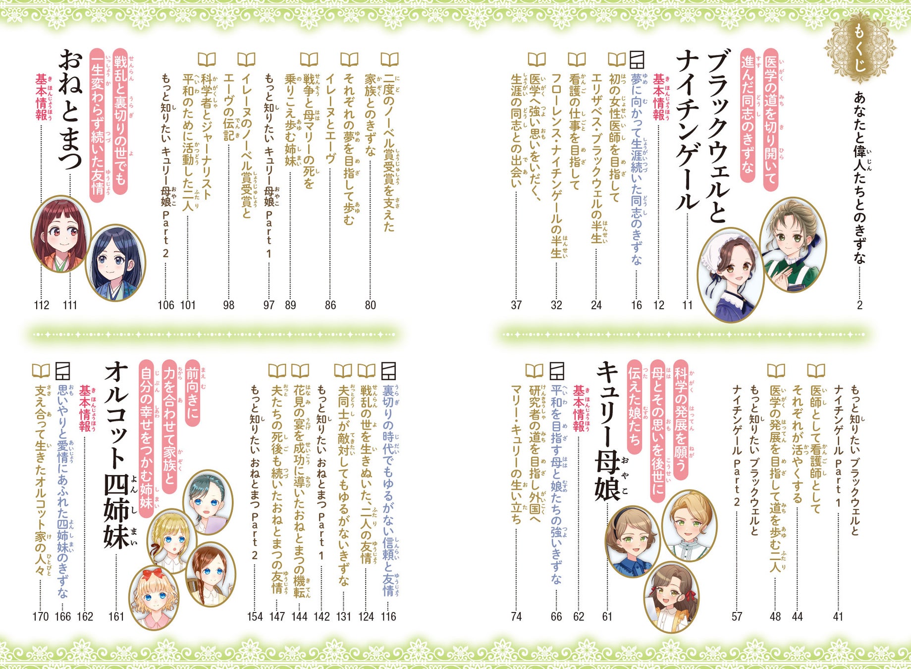 強いきずなで結ばれ、偉業をなしとげた5組の女性たちのおはなしを《マンガ×イラスト×読み物》で紹介します。