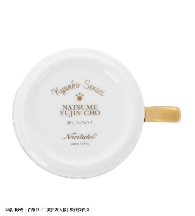 カップ裏、ソーサー裏にはノリタケロゴと、NATSUME YUJIN-CHO、Nyanko Senseiの文字と、ニャンコ先生の肉球を印字しております。