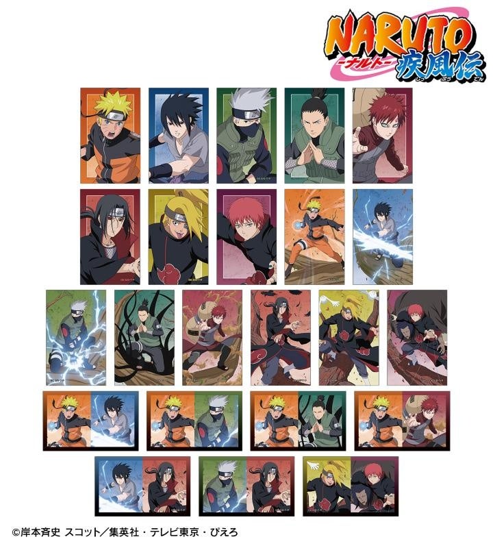 うずまきナルト、うちはサスケ、はたけカカシ、奈良シカマル、我愛羅、うちはイタチ、デイダラ、サソリの描き下ろしイラストをメインにデザインしました。