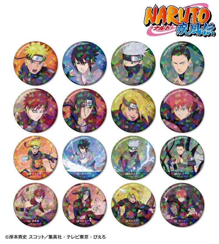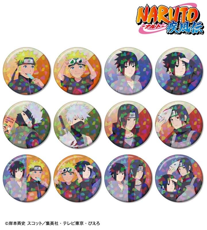 うずまきナルト、うちはサスケ、はたけカカシ、うちはイタチの描き下ろしイラストをホログラム加工を施した缶バッジに仕上げました。