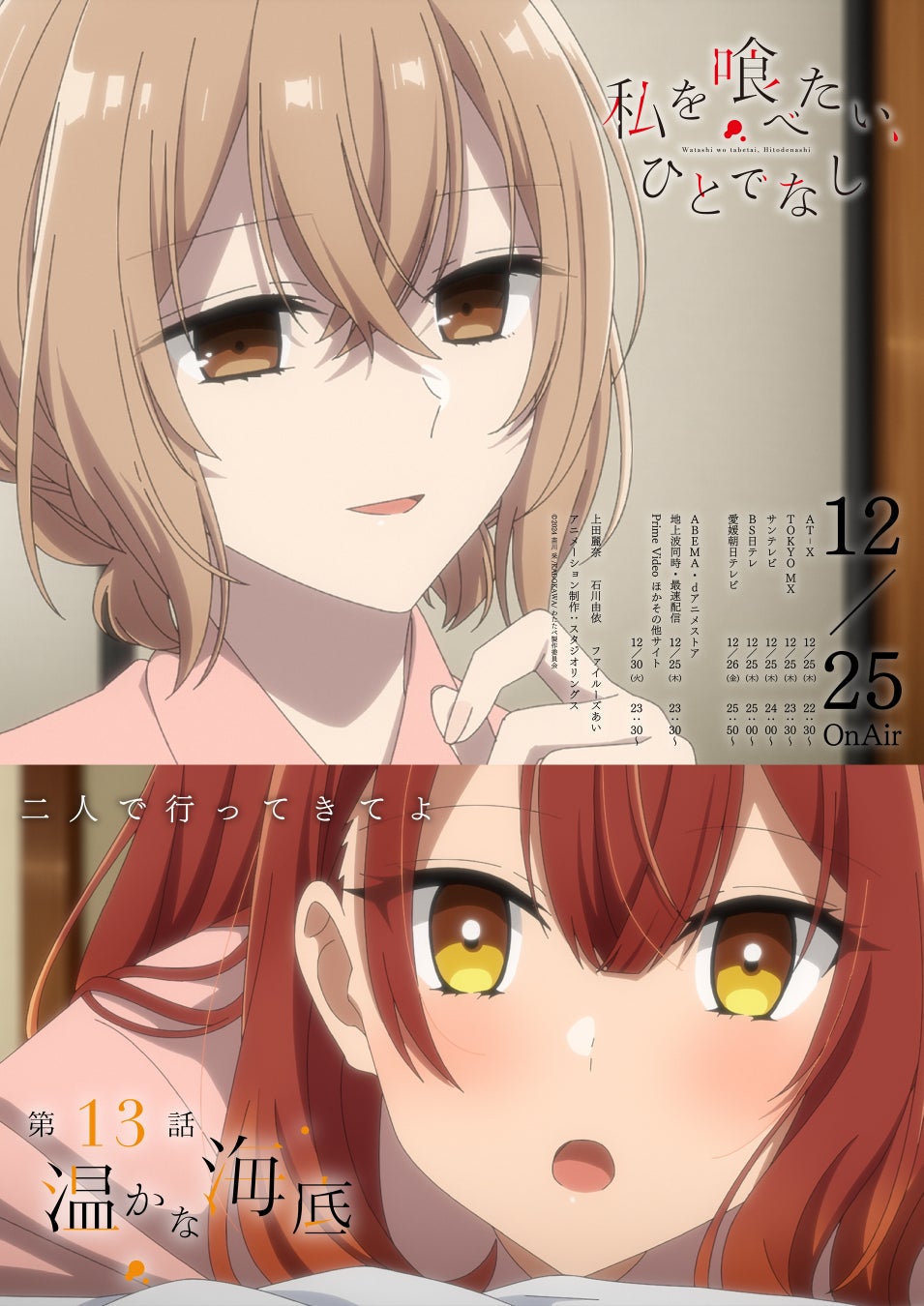 公開された予告映像では、比名子、汐莉、美胡の声とともに、無数の言葉たちが深い海の底から次々と湧き上がり、神秘的な世界観を描き出しています。また、第13話の場面カットを使用したポスターは、それぞれが異なる2枚のカットで構成され、添えられた印象的な言葉が物語への期待を一層高める”エモーショナル”な仕上がりとなっています。