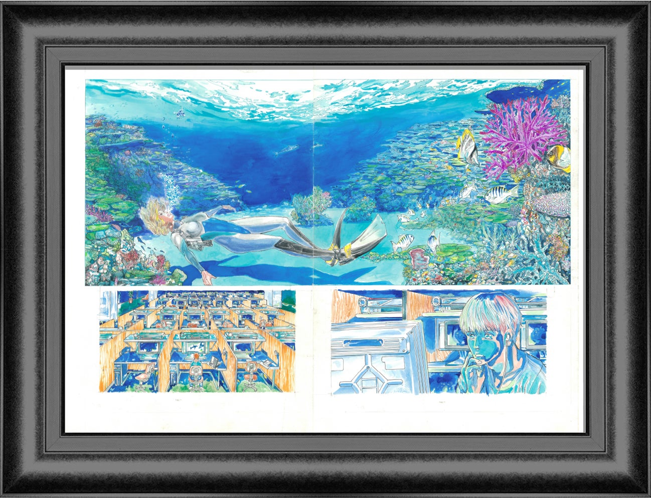 「マンガの原画と、我々が目にするコミック誌やコミックスの絵はまったく別物なんです。初めて生の原稿を受け取ったときのショックは今でも忘れることができません。キャラクターの感情までをも表現するようなペンタッチ、ていねいに削られて見事に陰影を描き出すスクリーントーンの使い方、マンガ誌で見るのとはまるでちがう迫力があります。残念なことにコミック誌は束を出すために粗悪な紙が使われています。そのため、このペンタッチはほとんど消えてしまうんです。ましてやサイズの小さな単行本ではトーンの微妙な陰影なども潰れて極めて単調なものになってしまいます。カラー原画は多色で描かれたものを4色で再現するため、粗悪な紙と相まって原画とは似ても似つかないものなっているのが現実です。昔、読んだマンガの原画を見て、原画だけが持つ迫力と魅力の一端にぜひ触れて、アートとしてのマンガを鑑賞していただければと思っています」。