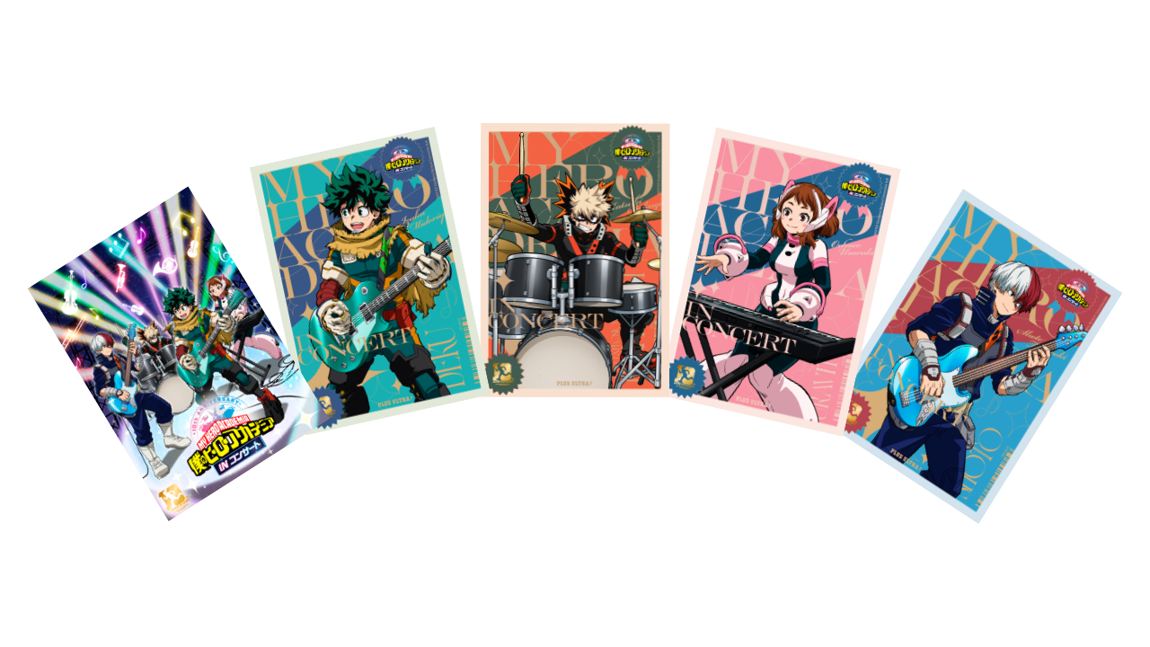 描き下ろしビジュアルを使用したアートボード特典付きチケットを購入頂いた方は1枚につき、キービジュアル(KV)ver.、緑谷出久ver.、爆豪勝己ver.、麗日お茶子ver.、轟焦凍ver.の5種類から1種類お選び頂けます。