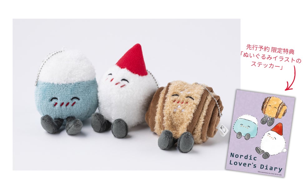 先行予約を記念して、限定特典「ぬいぐるみイラストのステッカー」(縦75mm×横55mm)付きの特別セット。『北欧こじらせ日記』シリーズに登場する「かもめ」「シナモンロール」「ふじさん」の3モデルです。1つでも可愛いけど、3つのキャラクターが揃うと、さらに可愛い!!「北欧こじらせ」シリーズの世界観が広がります。