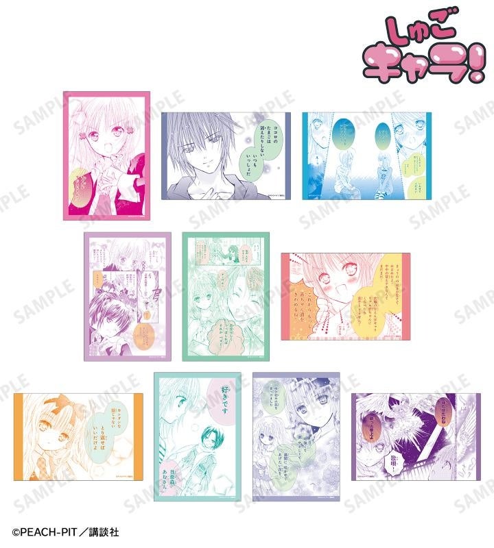 日奈森 あむ、月詠 イクト、辺里 唯世、藤咲 なでしこ、相馬 空海、結木 やや、真城 りま、三条 海里、藤咲 なぎひこ、ほしな 歌唄の原作コマイラストをクリアカードに仕上げました。