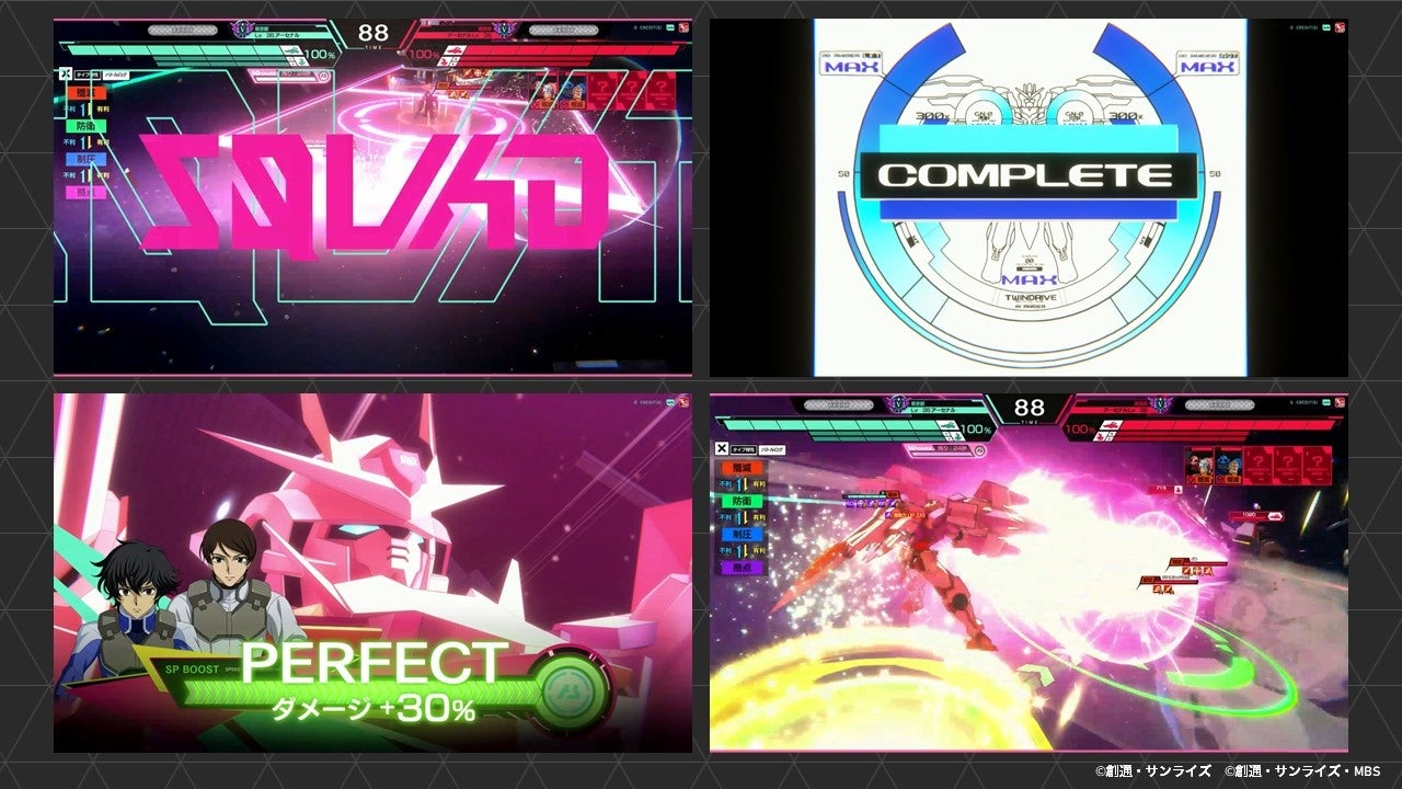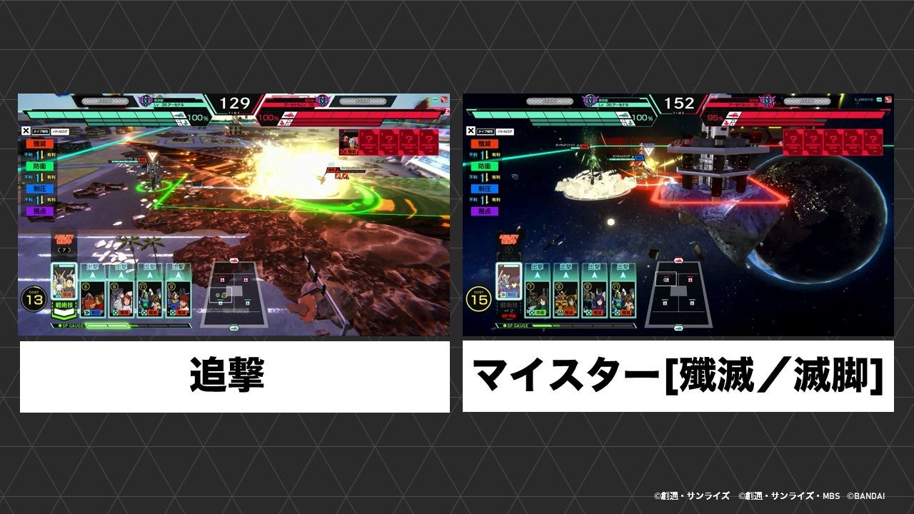 味方MS同士が連携する連携戦術技、指定されたPLカードをそろえ、「SQUAD RUSH」を発動させる結束戦術技や、任意のミッションをクリアして発動する共闘戦術技を駆使して大ダメージを与え、仲間と共に殲滅を目指しましょう。